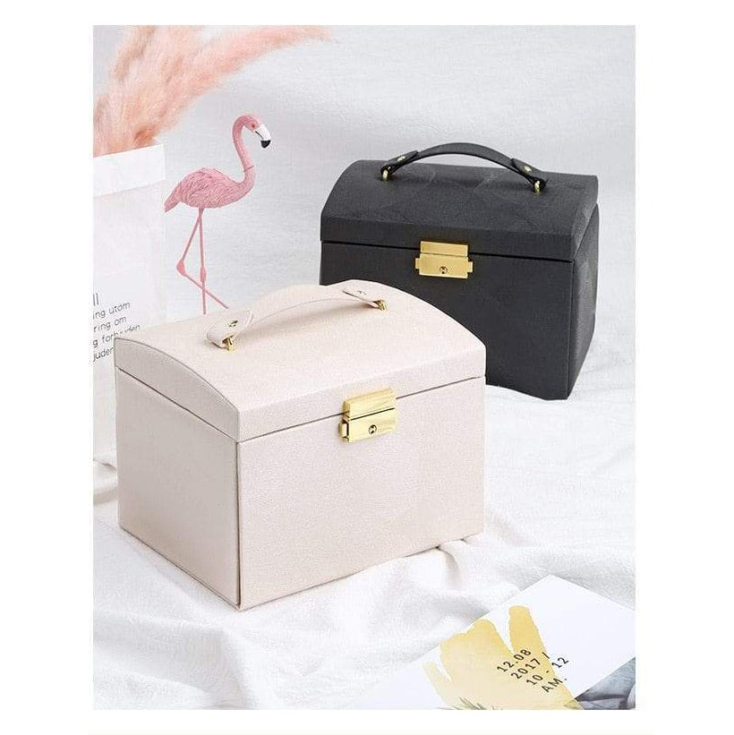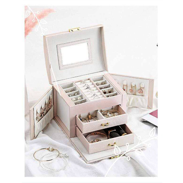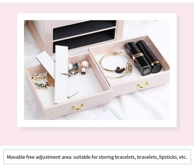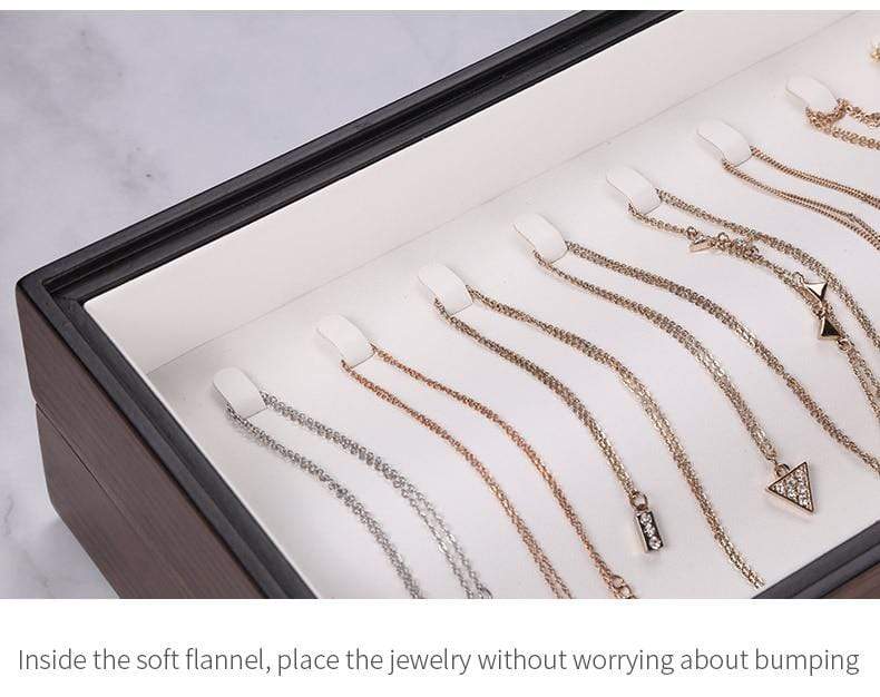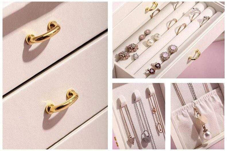 Your jewellery is protected against sunlight and tarnishing, enveloped in soft velvet lining and carefully arranged in hooks, drawers, and compartments—keeping every piece in it's original condition, untangled, and easy to find.