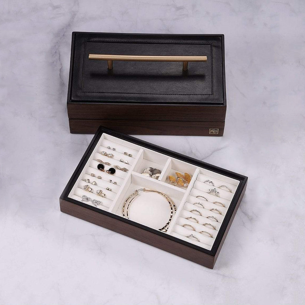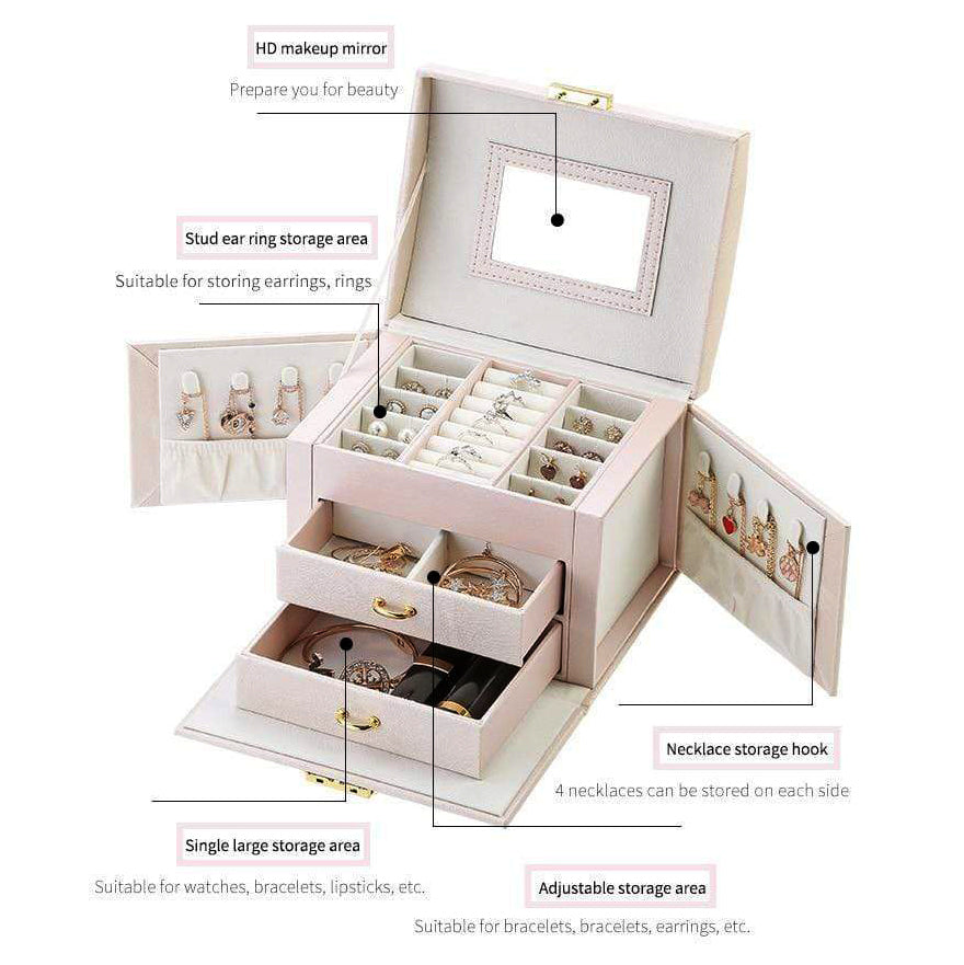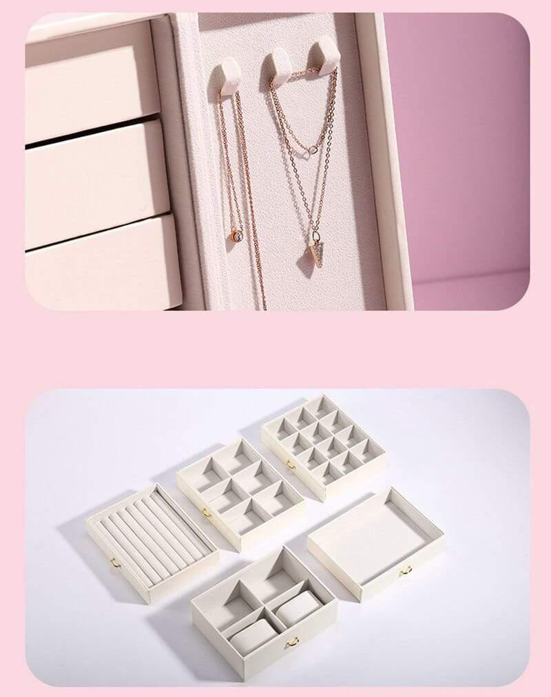 - Keeps your jewellery organised: ring rolls, hooks, drawers, trays