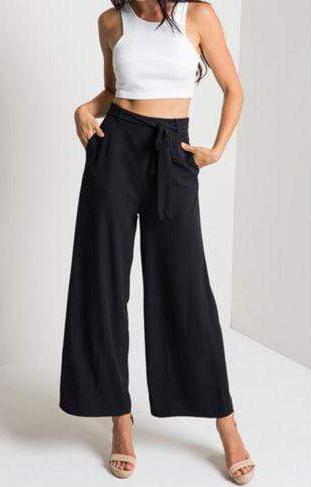 Our 'Soldier on pants' will look so elegant with a blouse or cardigan. Cut from soft material twill in a wide-leg silhouette, they have a long belt that draws attention to the high waist bow tie. The cropped length will work well with mules and sneakers.