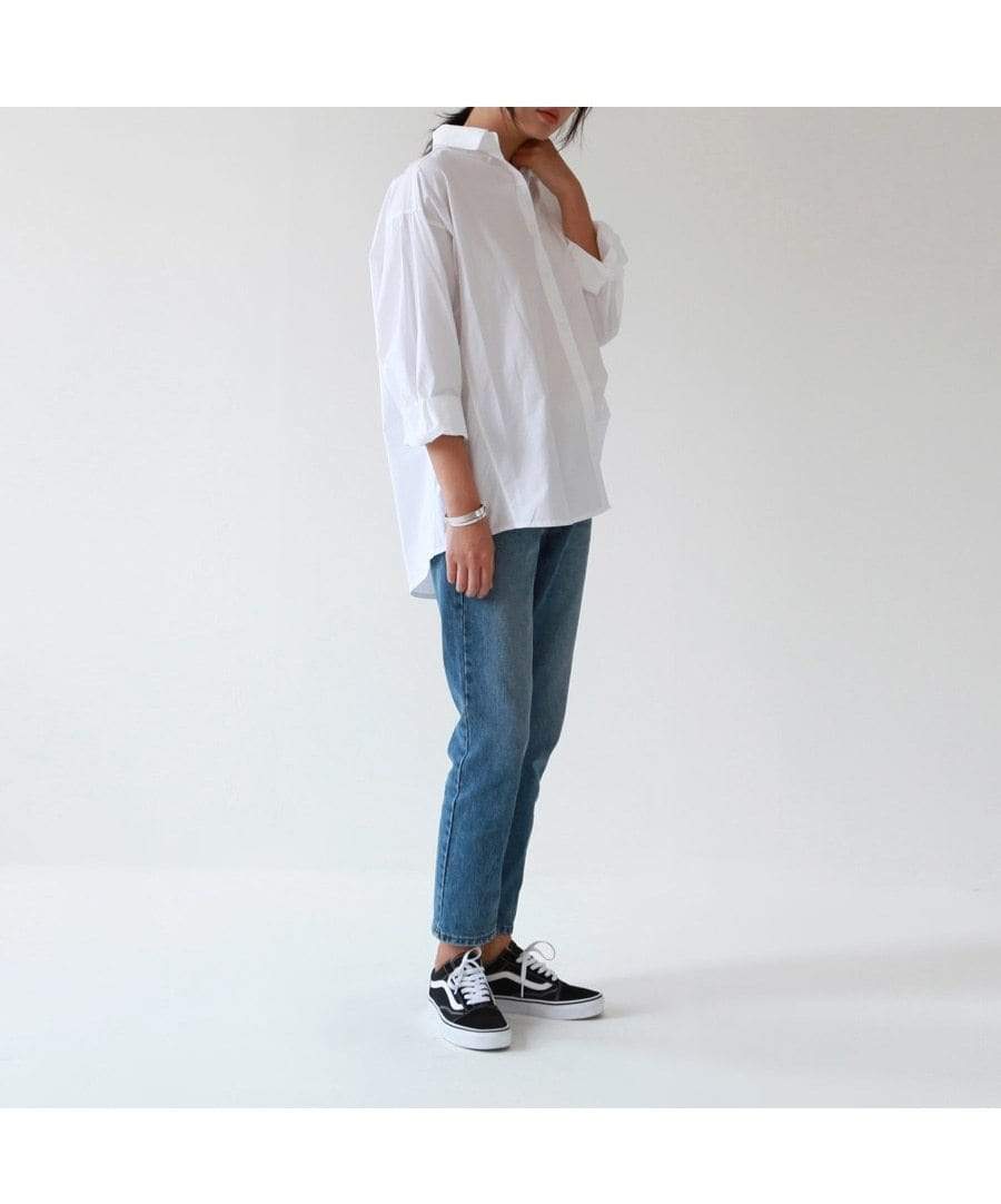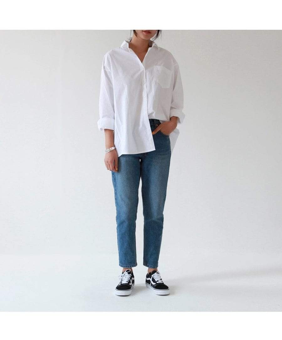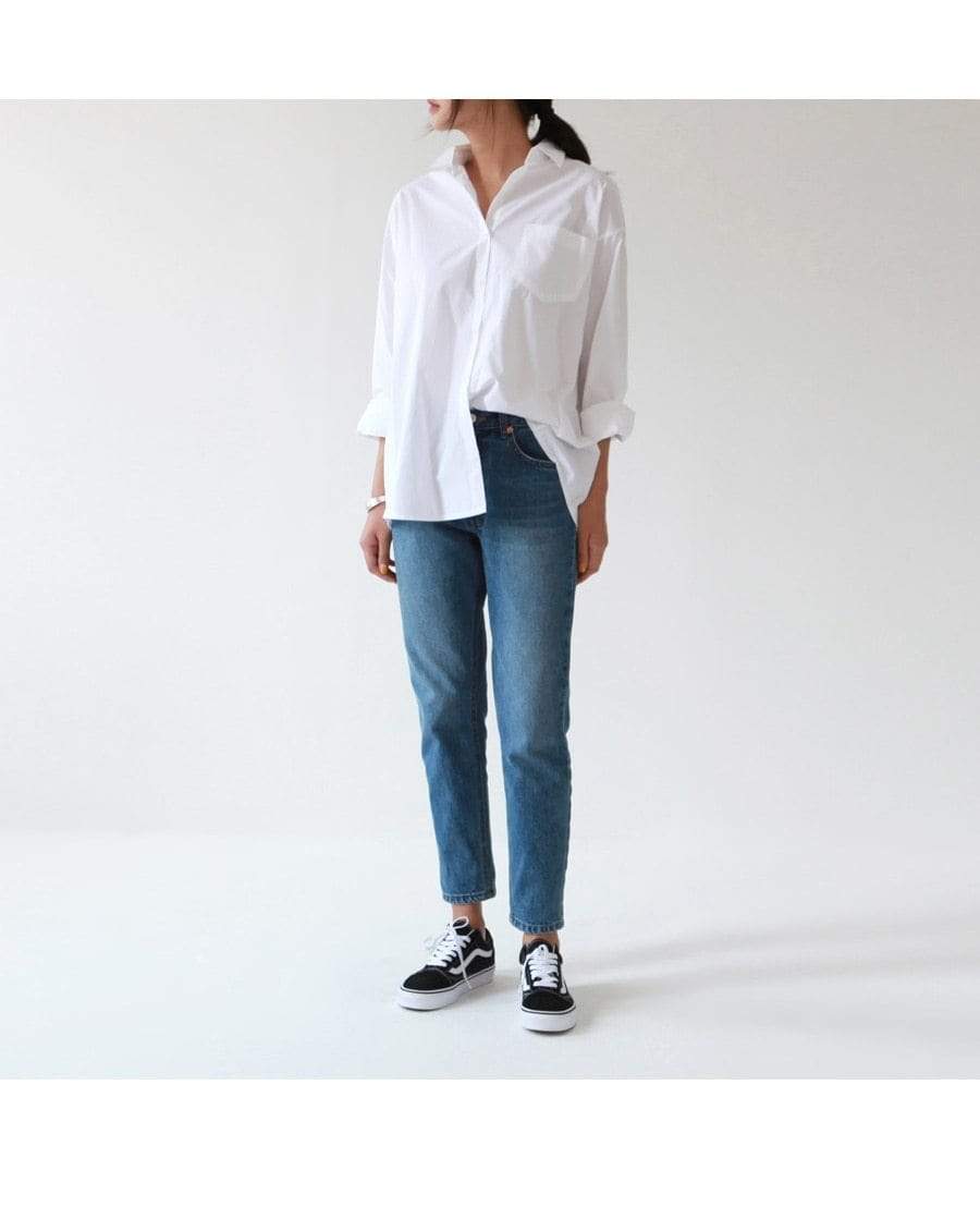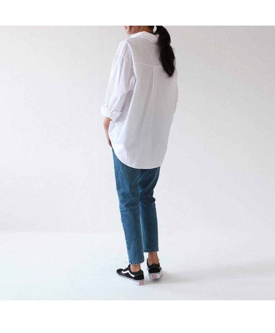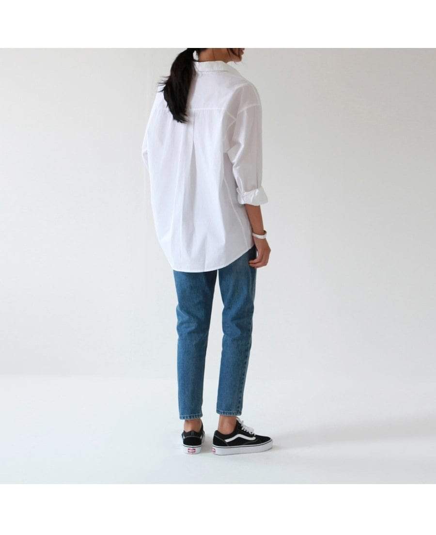 Relaxed casual white shirt for work our casual. Crisp cotton blend fabric and superb comfort. Durable for all year round wear. Looks great with jeans or wide legged pants too.