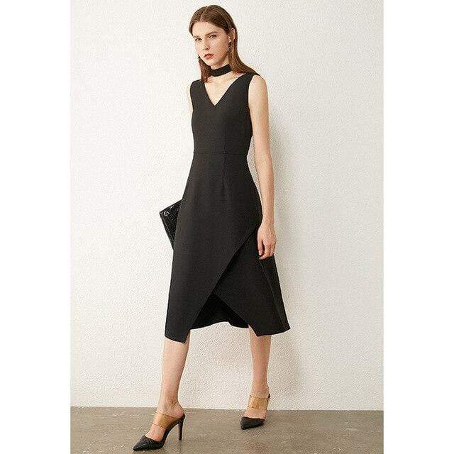 Figure hugging dress with a darted waist. Gorgeous silhouette and mid-length and split at the front. Great look for work whilst easily dressed down or up for both casual and formal. Featuring a center front split and A line skirt style for ease of movement.