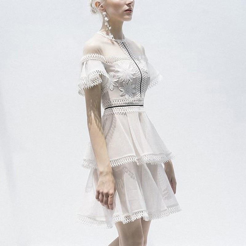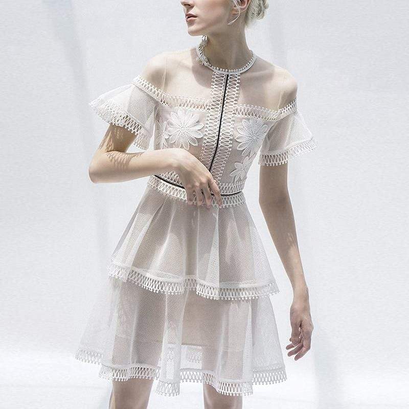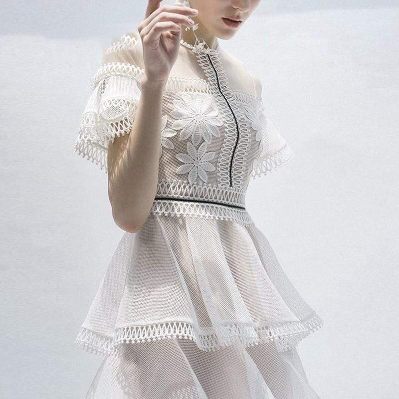 A vintage v-neck hollow out dress with patchwork ruffle and lantern long sleeves. This gorgeous dress is ideal for summer and cocktail parties with your friends and families.
