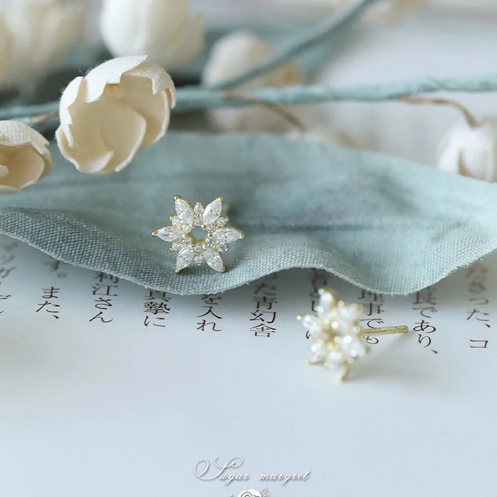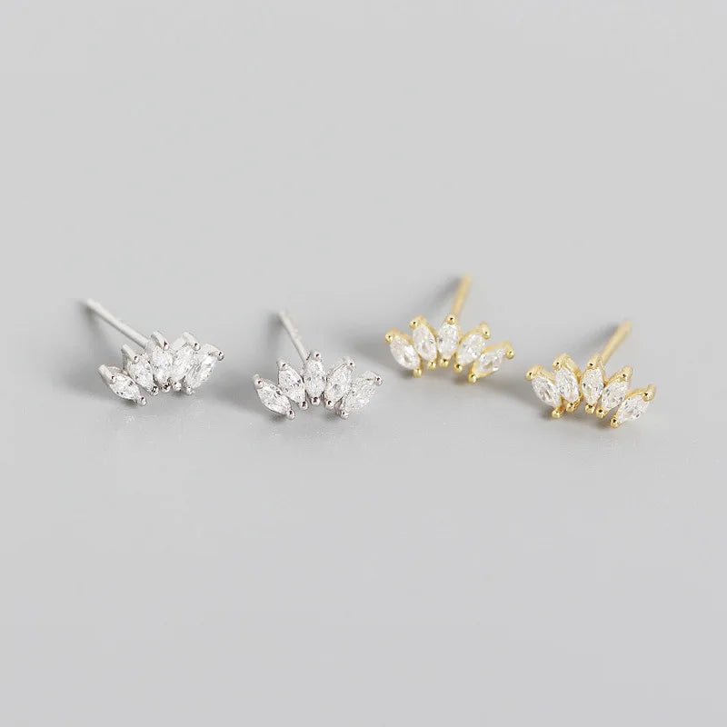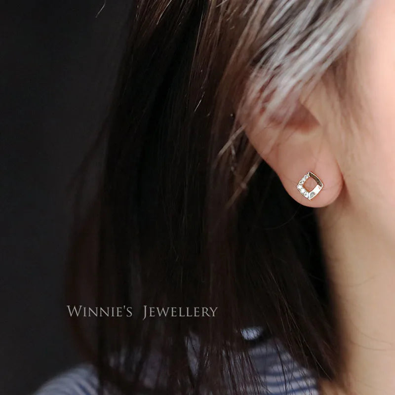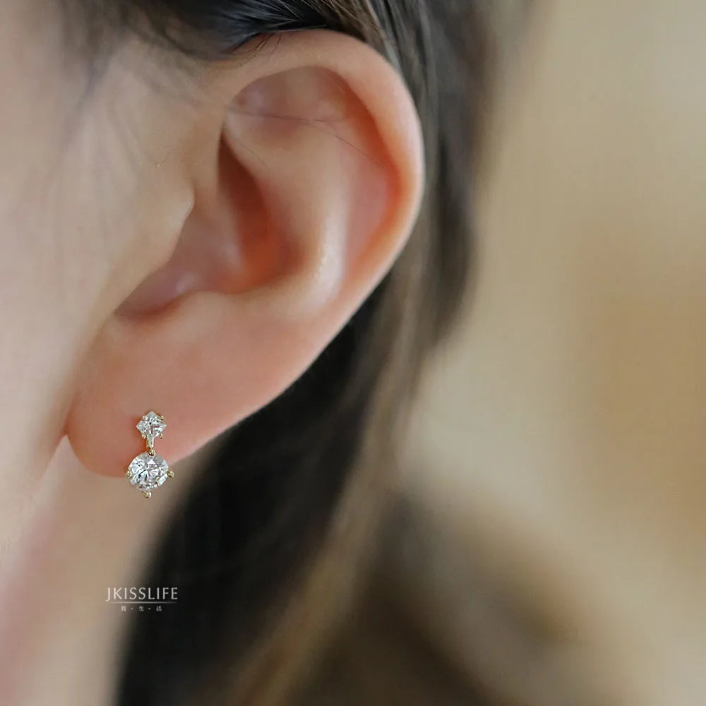 925 Sterling Silver 14k Gold Original Round Zircon Stud Earrings