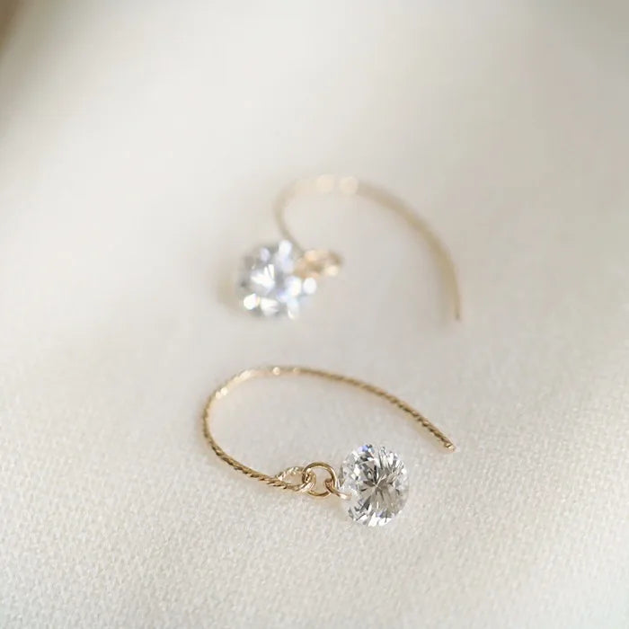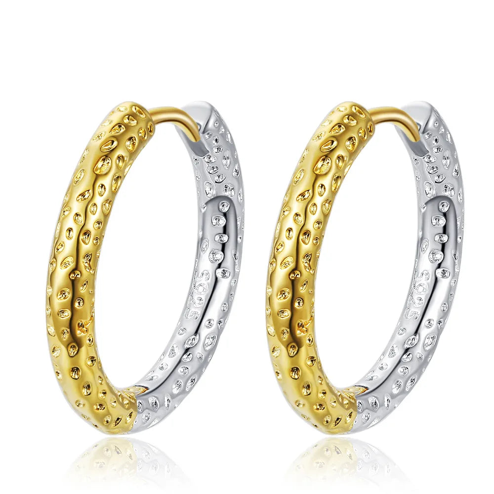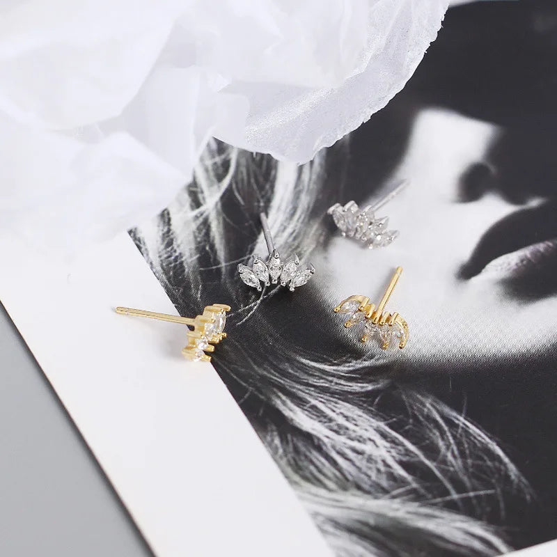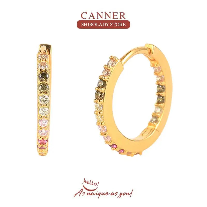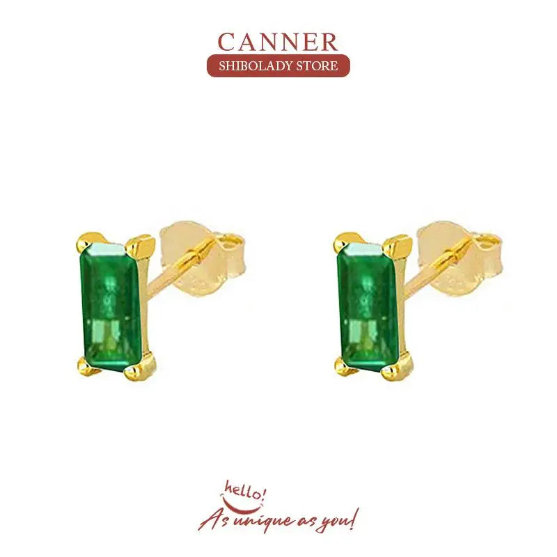 925 Sterling Silver 14k Gold Original Round Zircon Stud Earrings