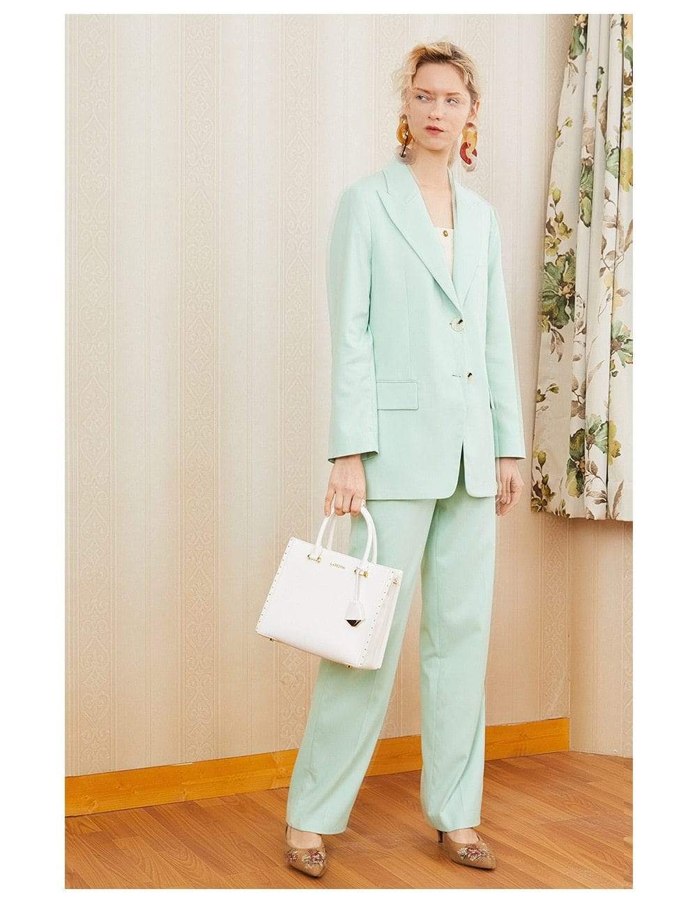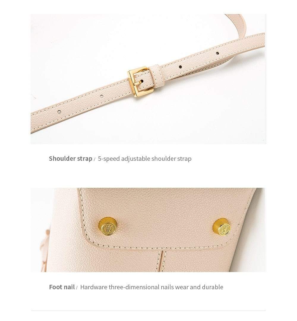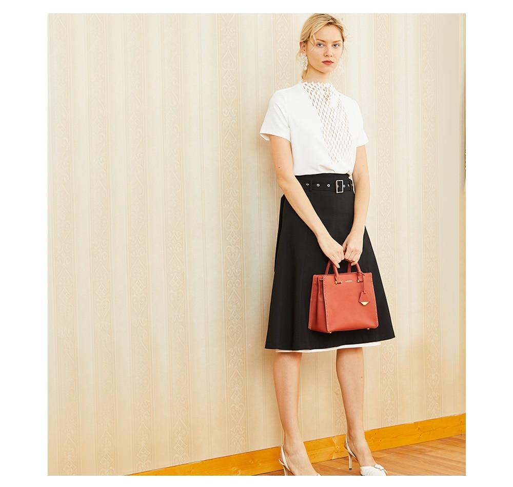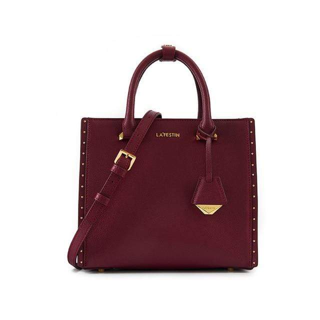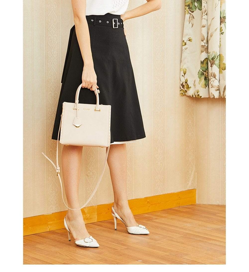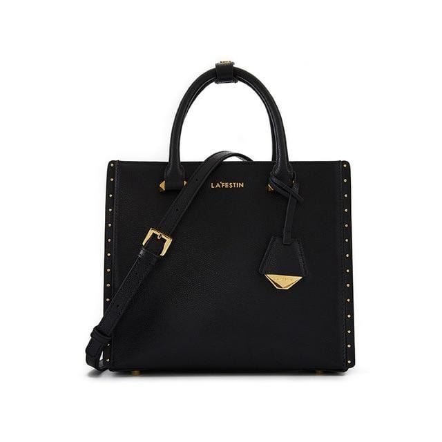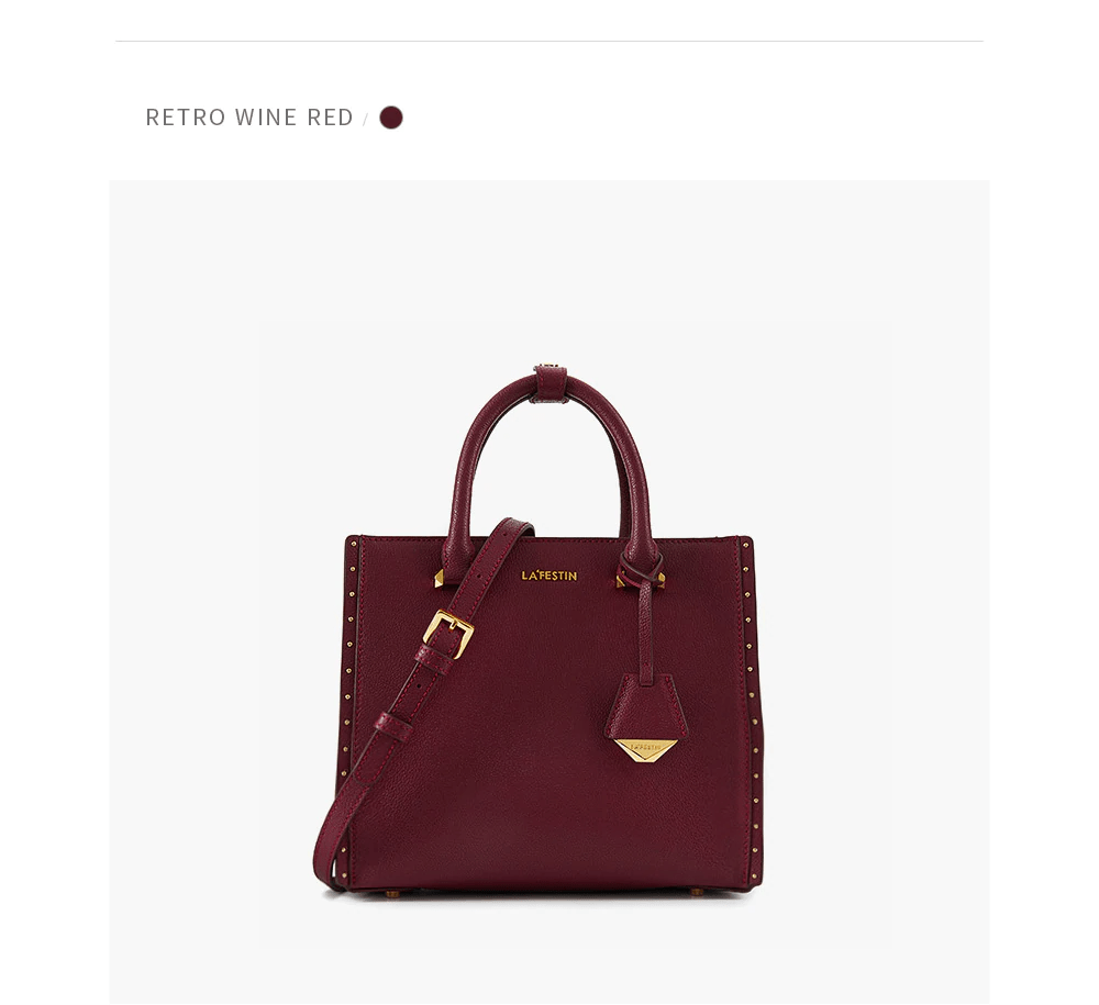 Feminine and elegant lightweight luxury top handle bag, with small bright gold rivets, studded and neatly down on both sides. Offers an insert pocket and a compartment inside with enough space for you to pack your phones, tissue, sunglasses, cosmetics, and some other small stuff, very daily-friendly and practical.