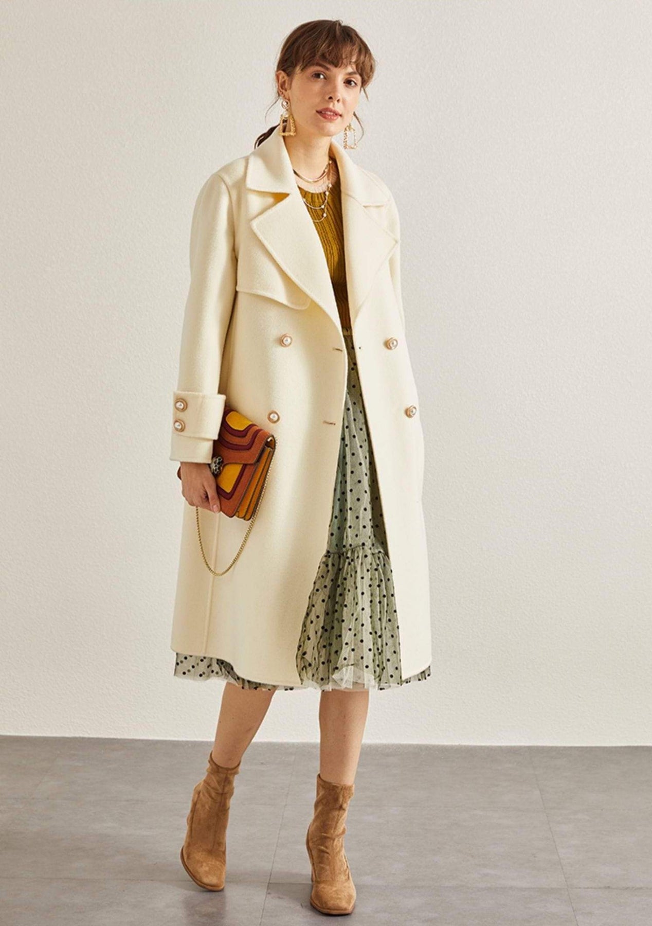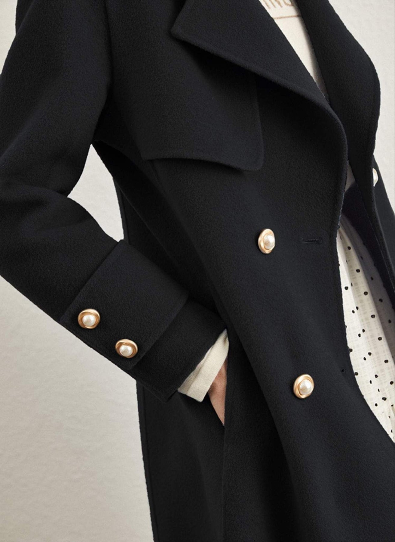 Beautifully tailored double breasted coat. It's elegant, it's chic and most of all sophisticated. Made from high quality wool blend coat fabric to keep you effortlessly warm throughout winter.