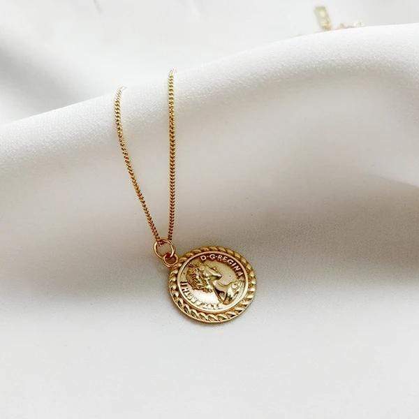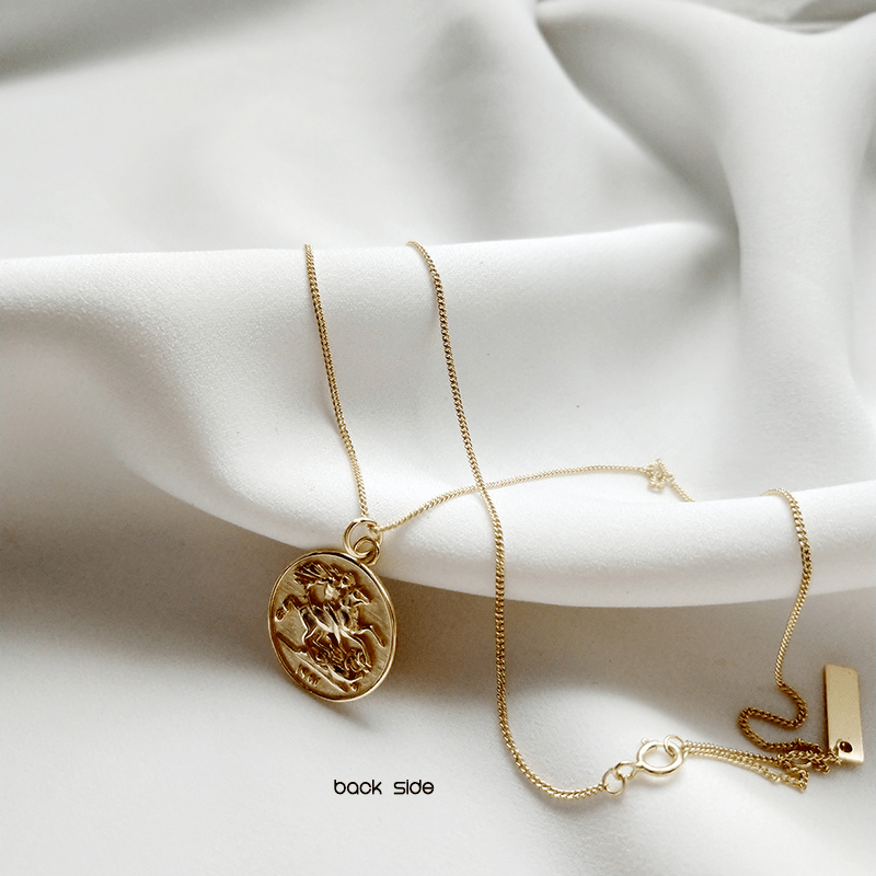 Simple and sophisticated 925 sterling sliver pendant is engraved to look like an ancient coin and strung on a delicate chain. The slim chain makes it easy to layer with other v neck tops, dresses or coats.