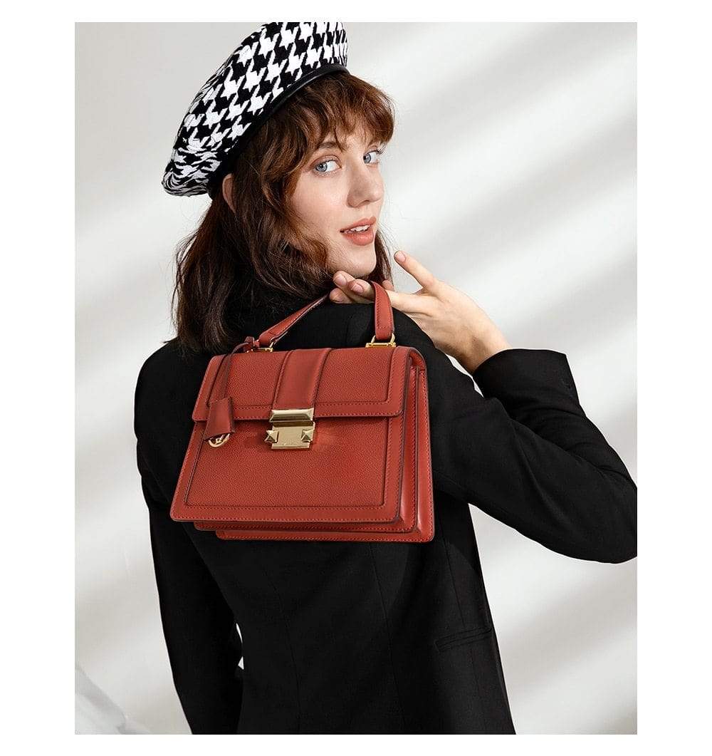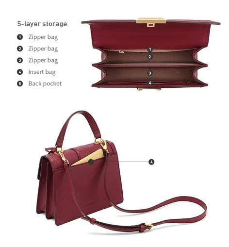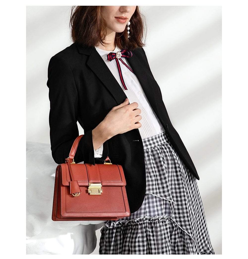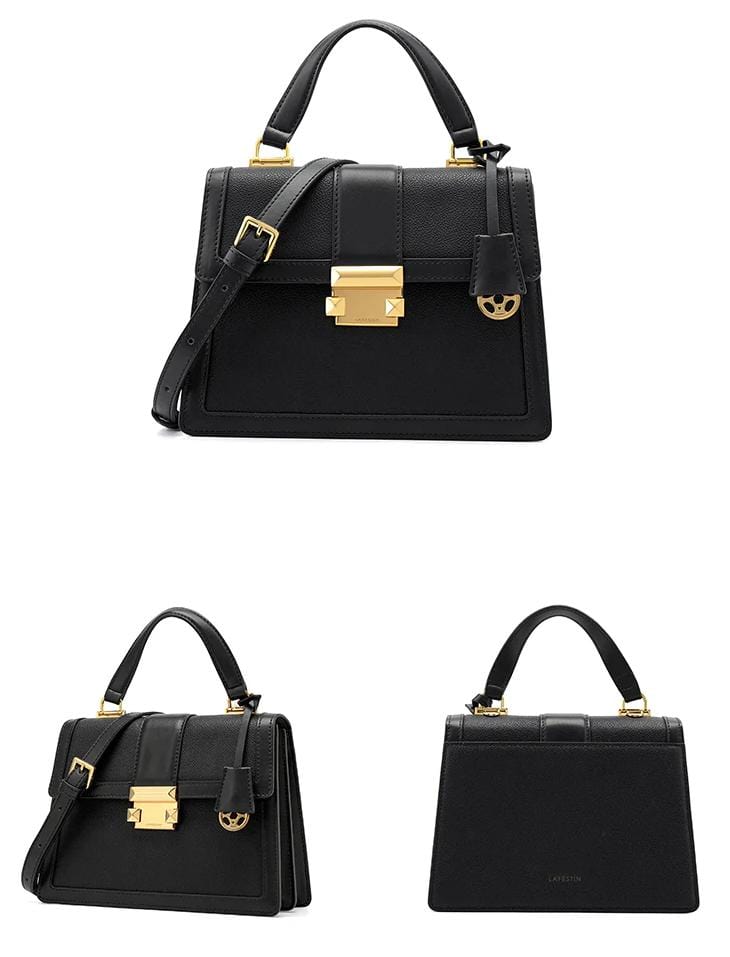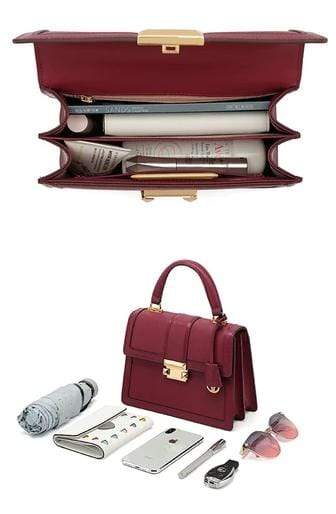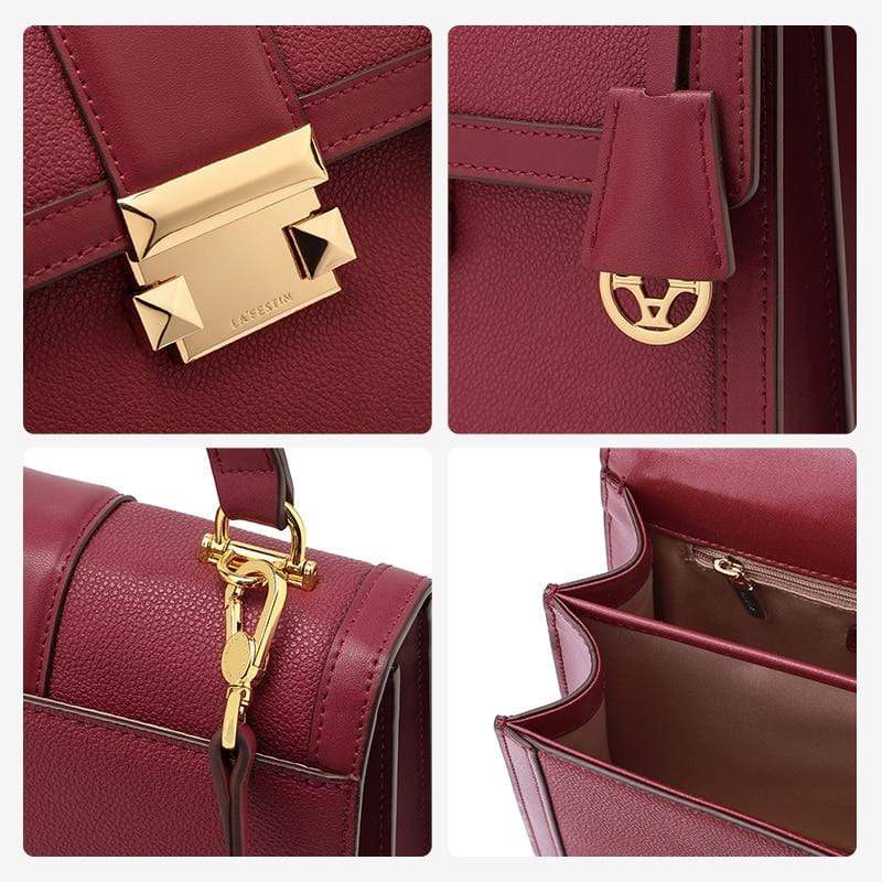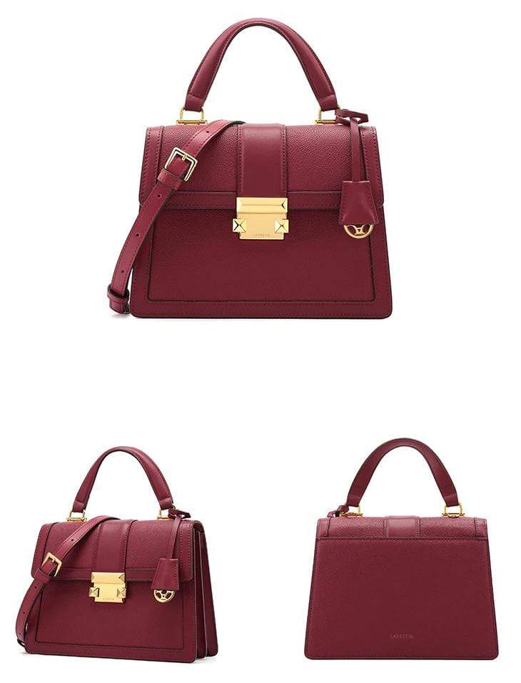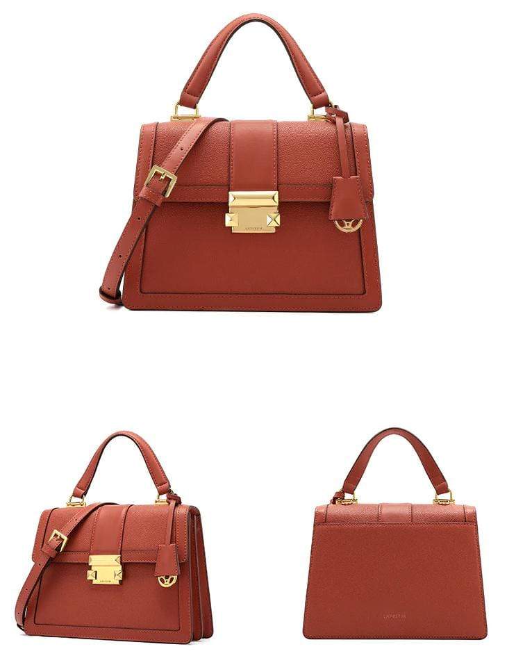 Luxury leather handbag made in beautiful high quality leather. Features gold coloured metal hardware in a feminine, classic design. It's practical and wearable with 5 layers of storage in multiple compartments to organise your stuff in a structured design.