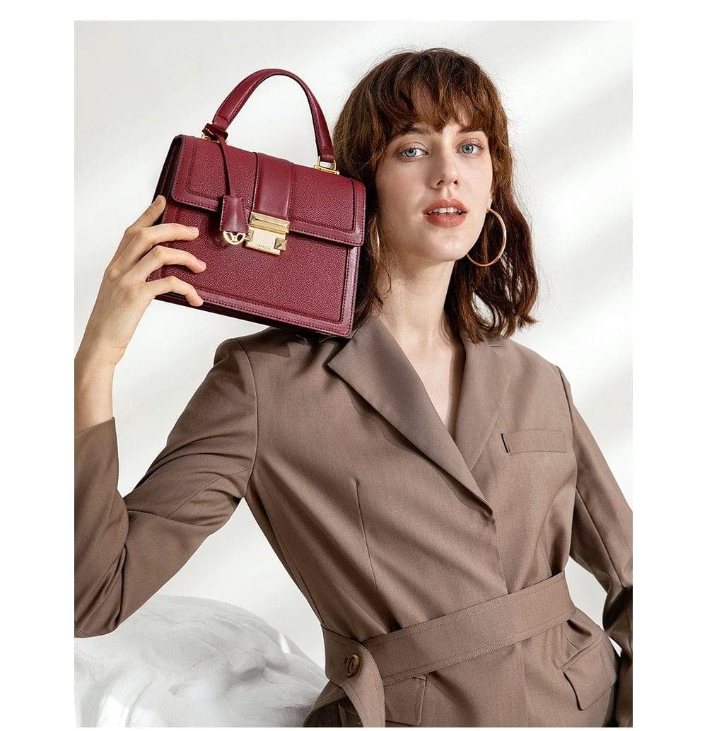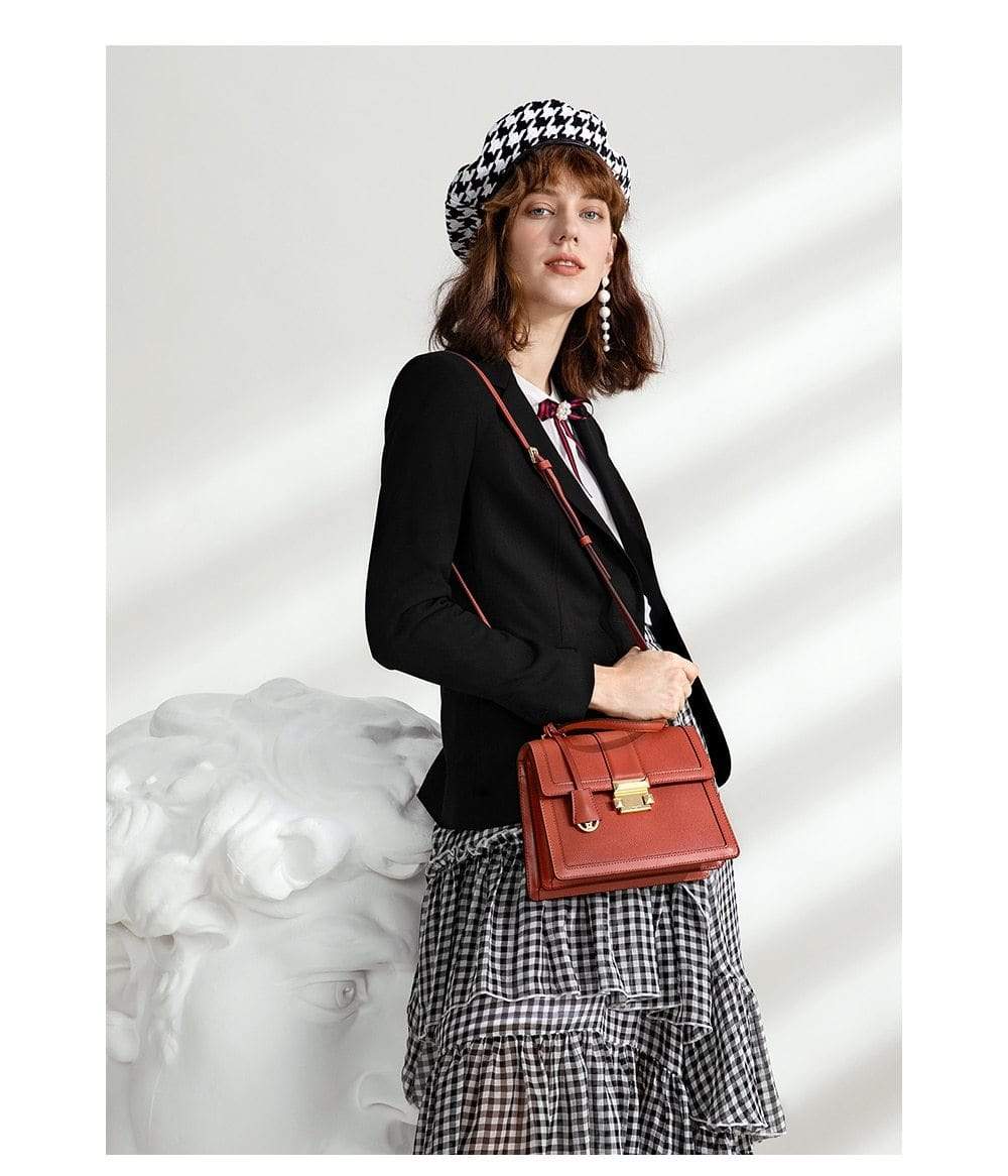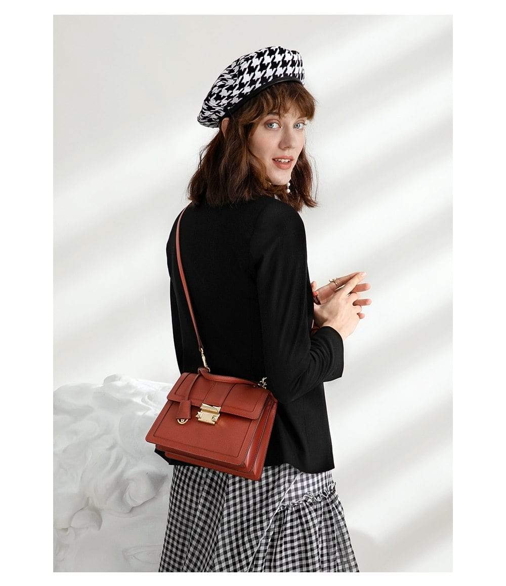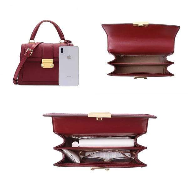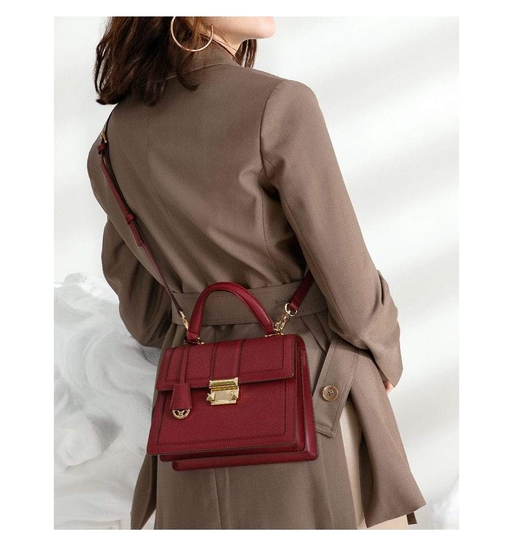 Luxury leather handbag made in beautiful high quality leather. Features gold coloured metal hardware in a feminine, classic design. It's practical and wearable with 5 layers of storage in multiple compartments to organise your stuff in a structured design.