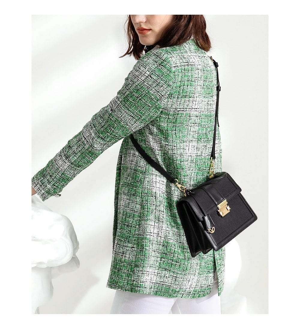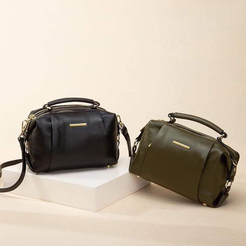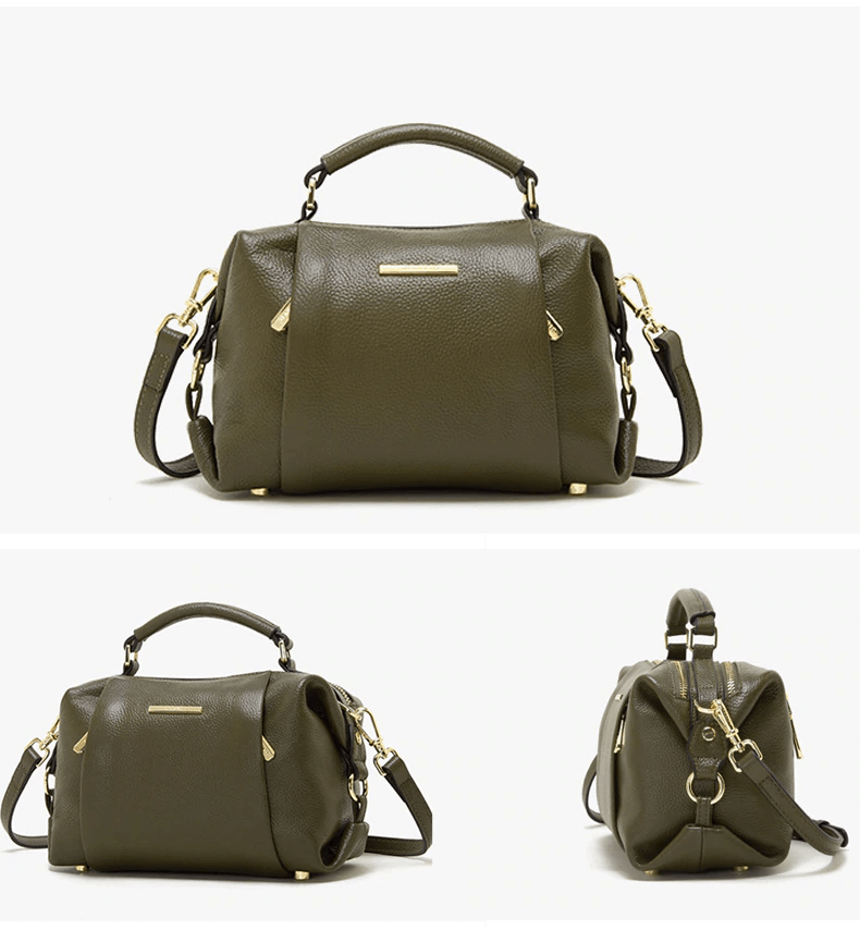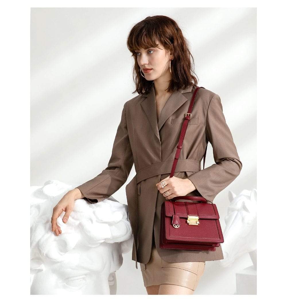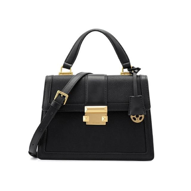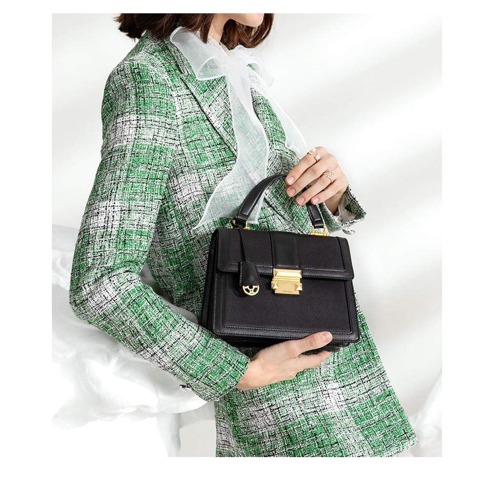 Luxury leather handbag made in beautiful high quality leather. Features gold coloured metal hardware in a feminine, classic design. It's practical and wearable with 5 layers of storage in multiple compartments to organise your stuff in a structured design.