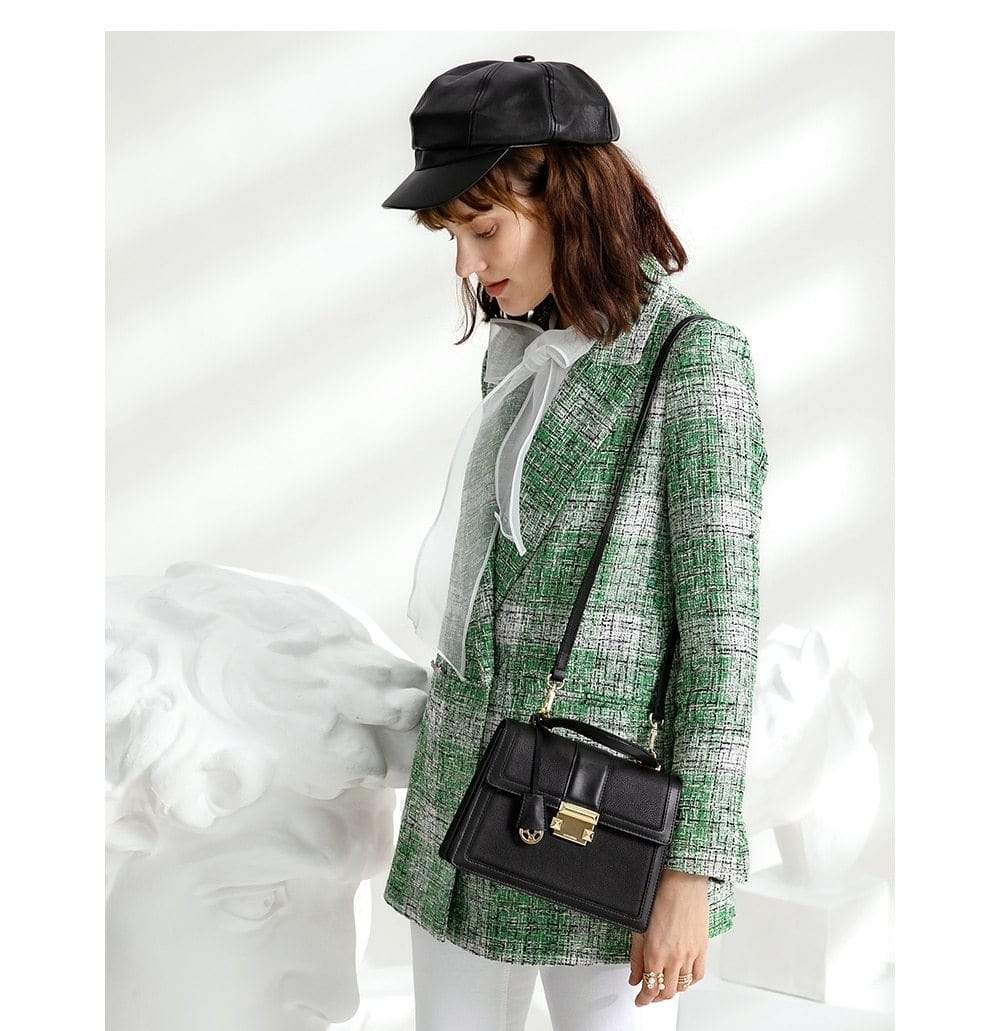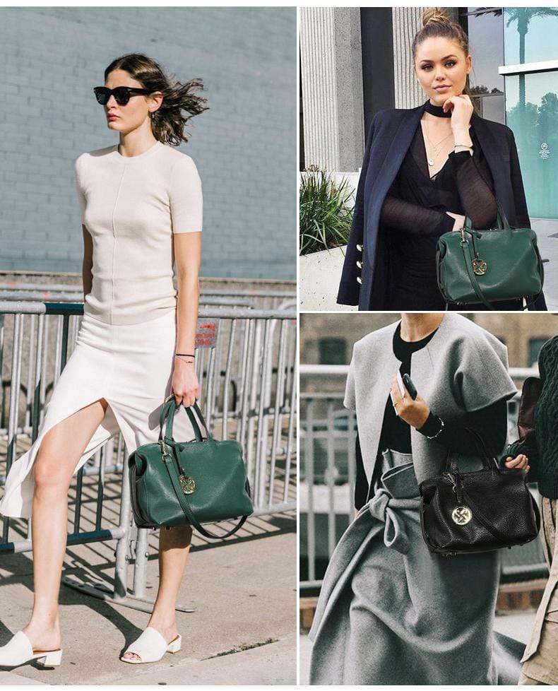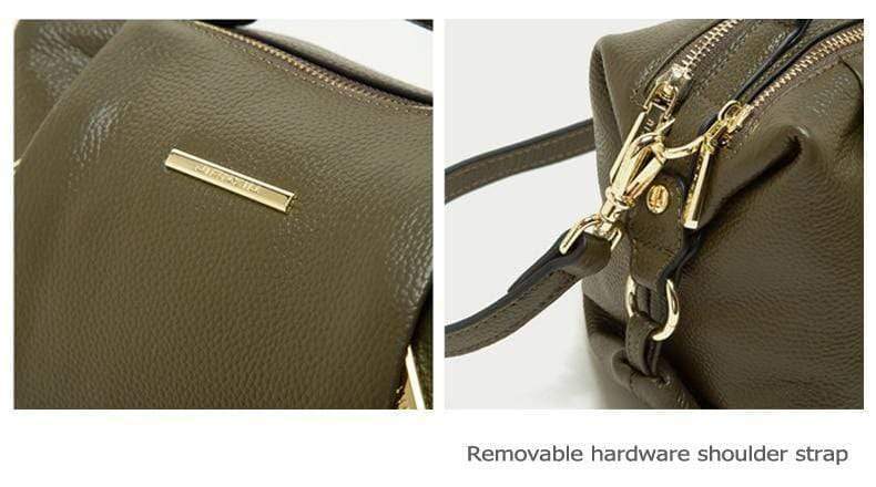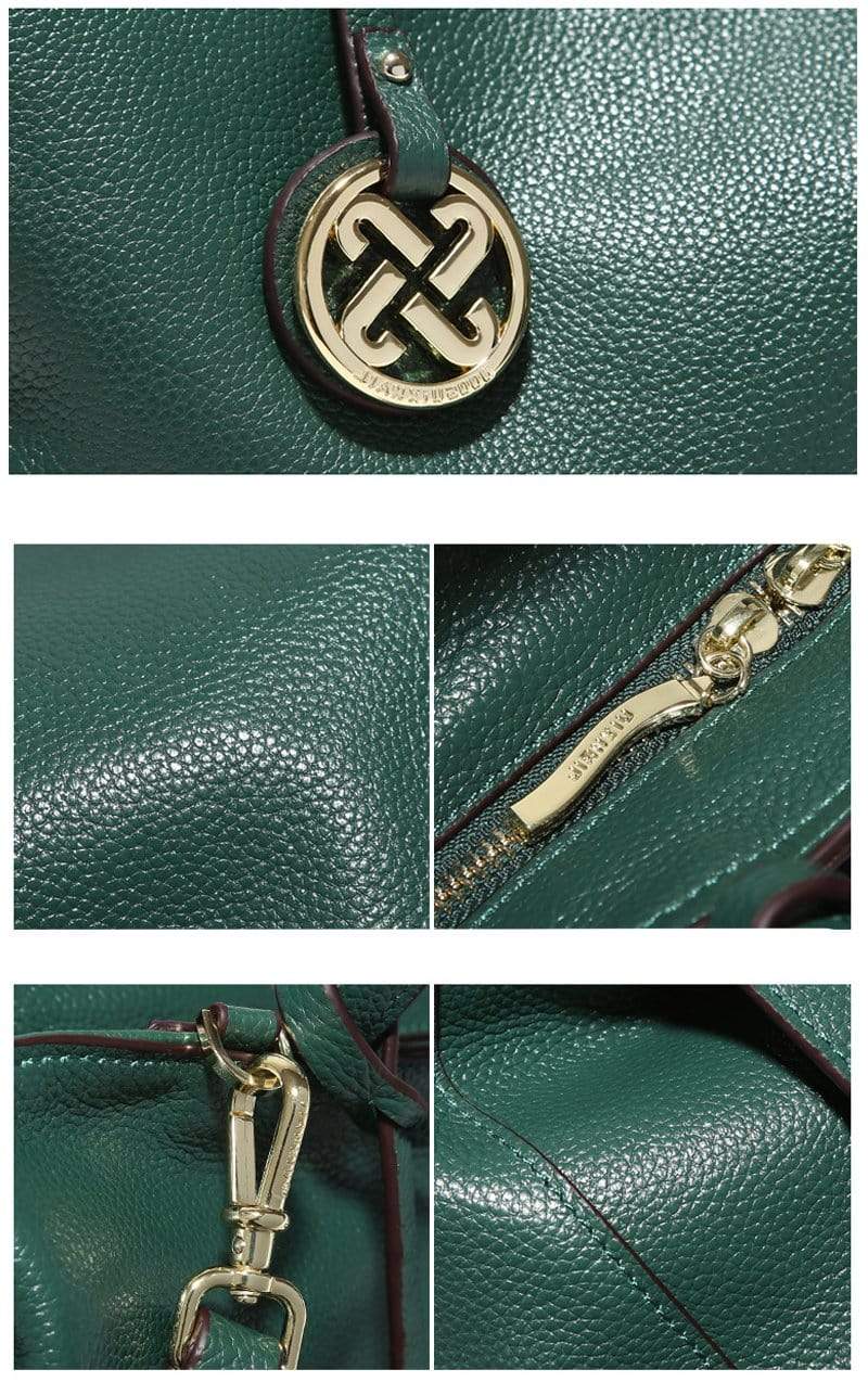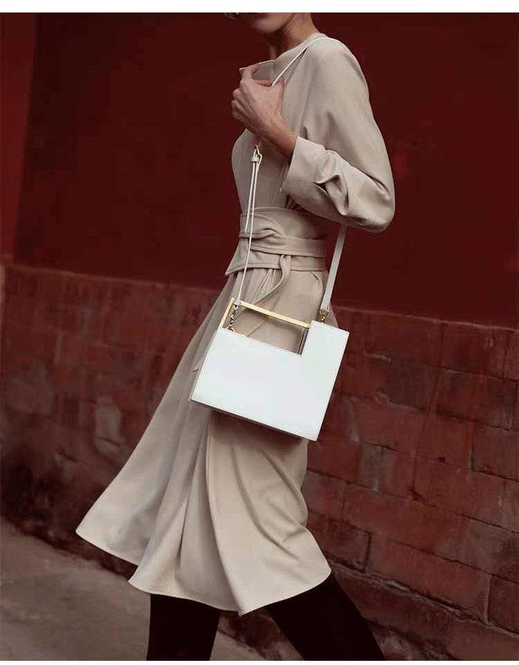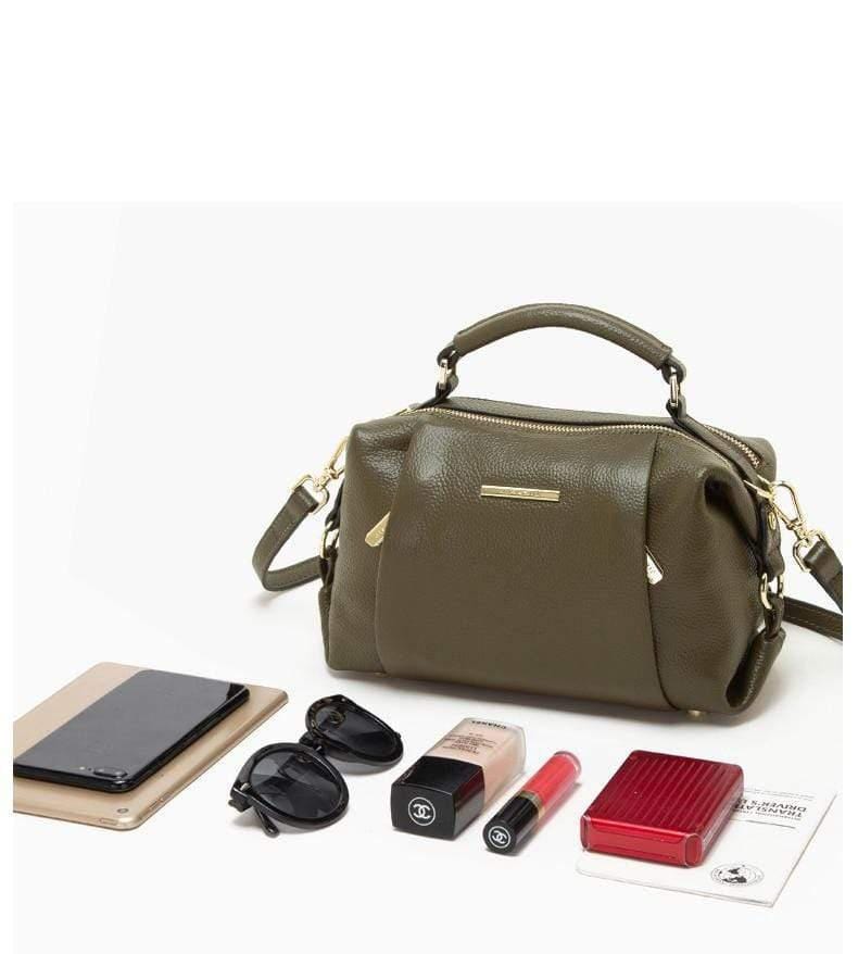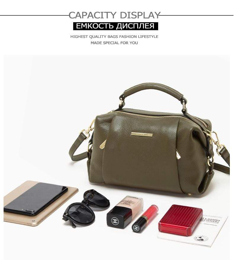 Luxury leather handbag made in beautiful high quality leather. Features gold coloured metal hardware in a feminine, classic design. It's practical and wearable with 5 layers of storage in multiple compartments to organise your stuff in a structured design.