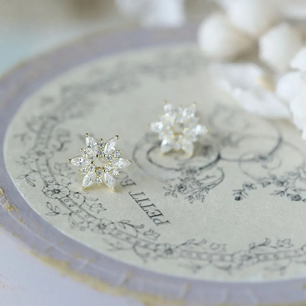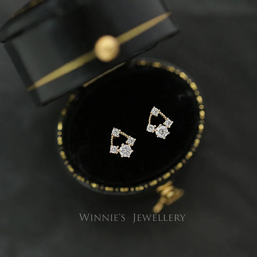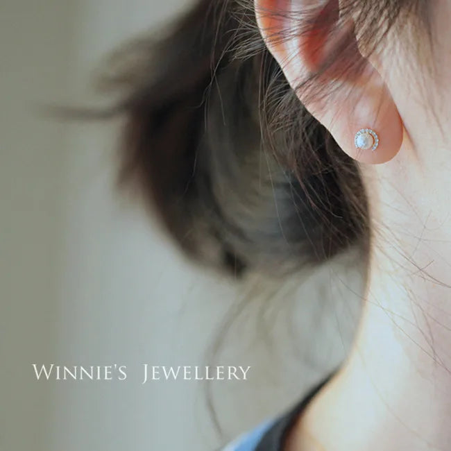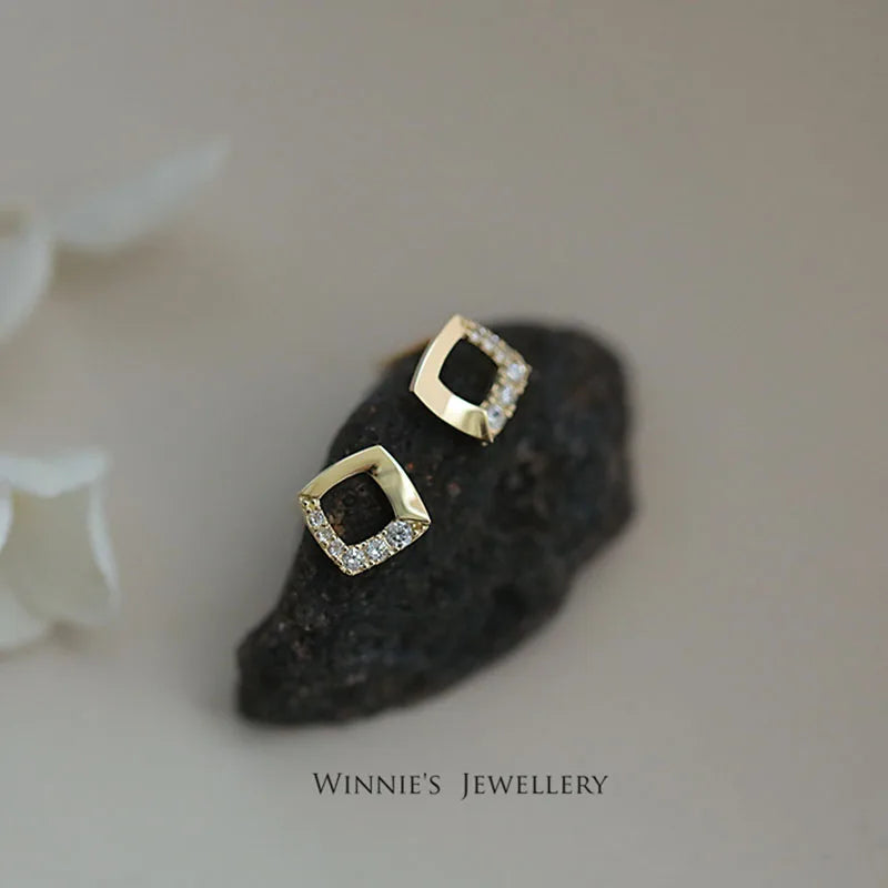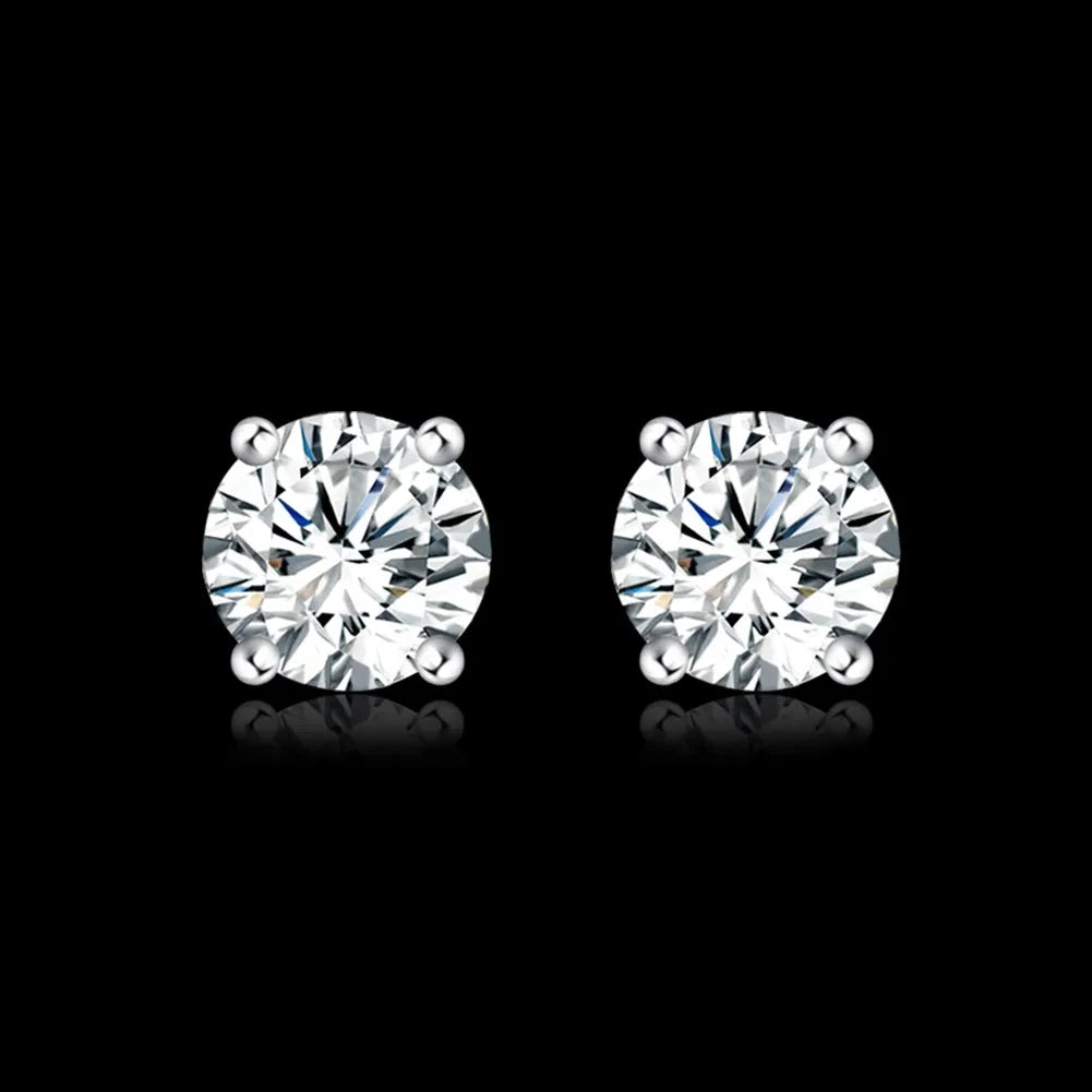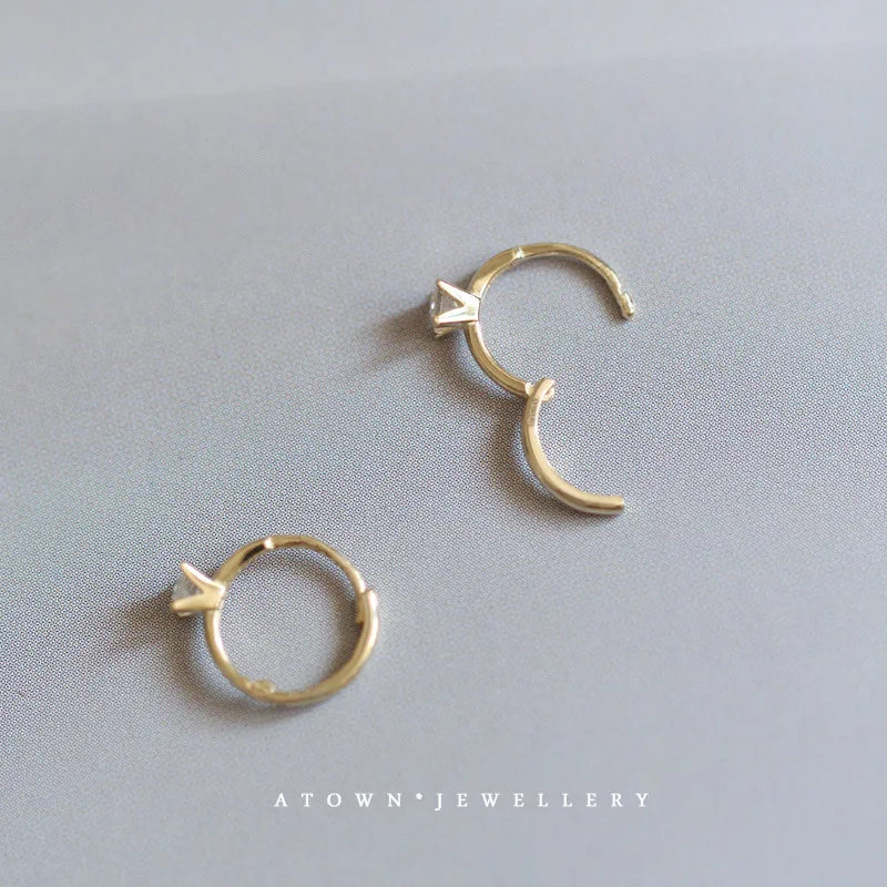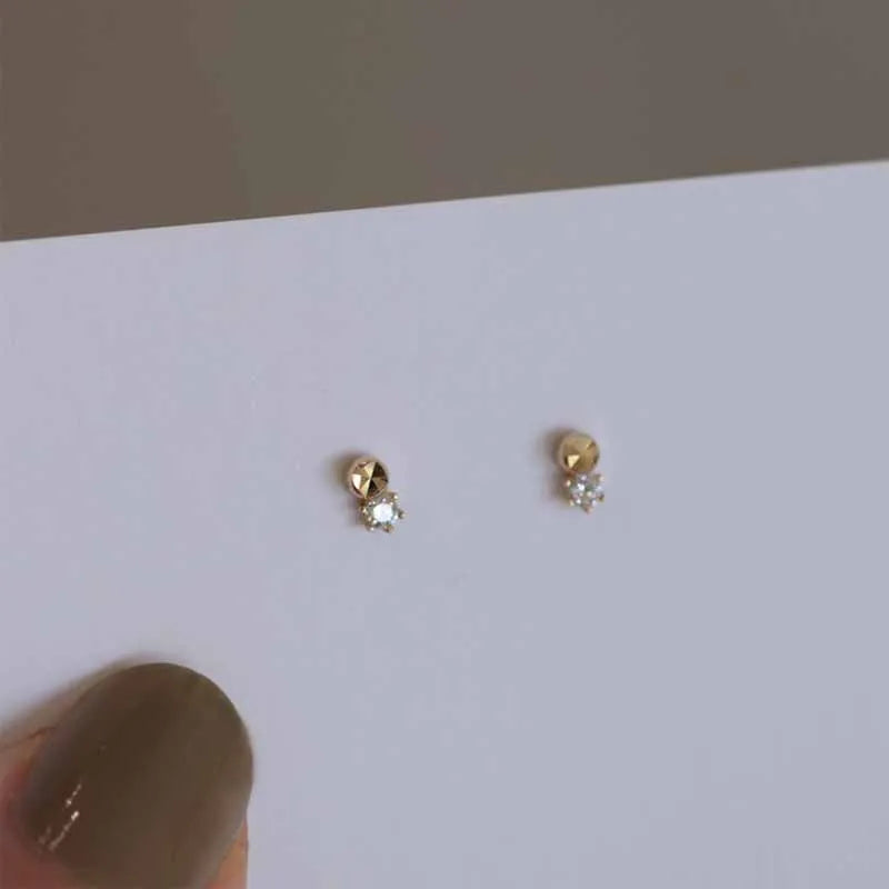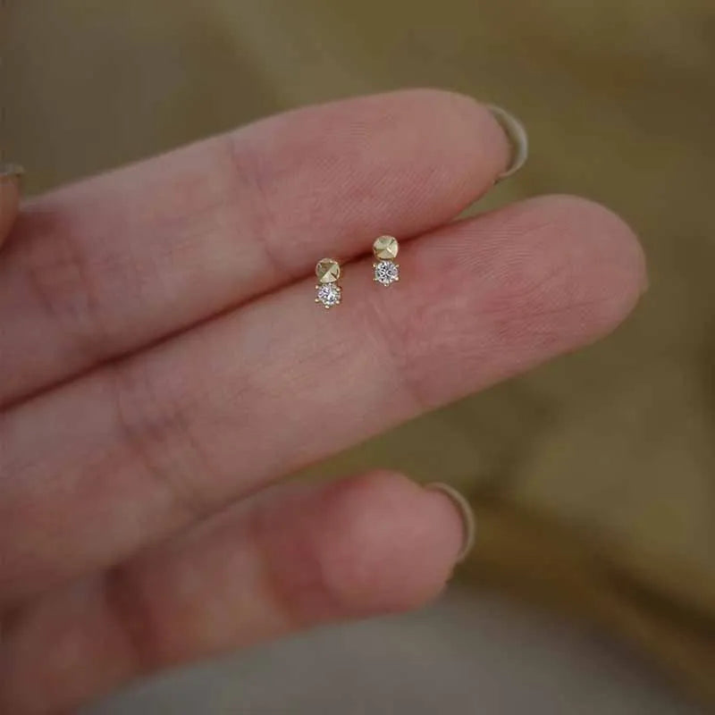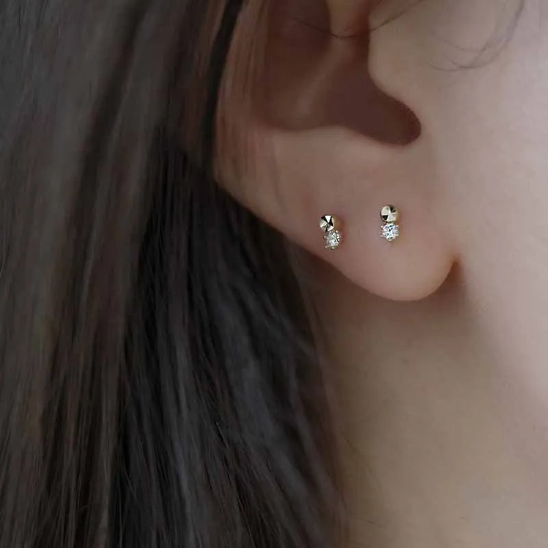 925 Sterling Silver 14k Gold Original Round Zircon Stud Earrings