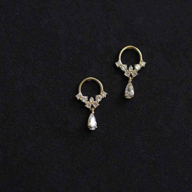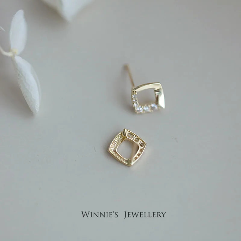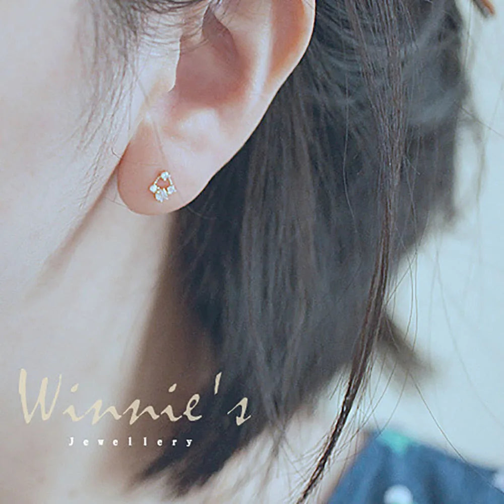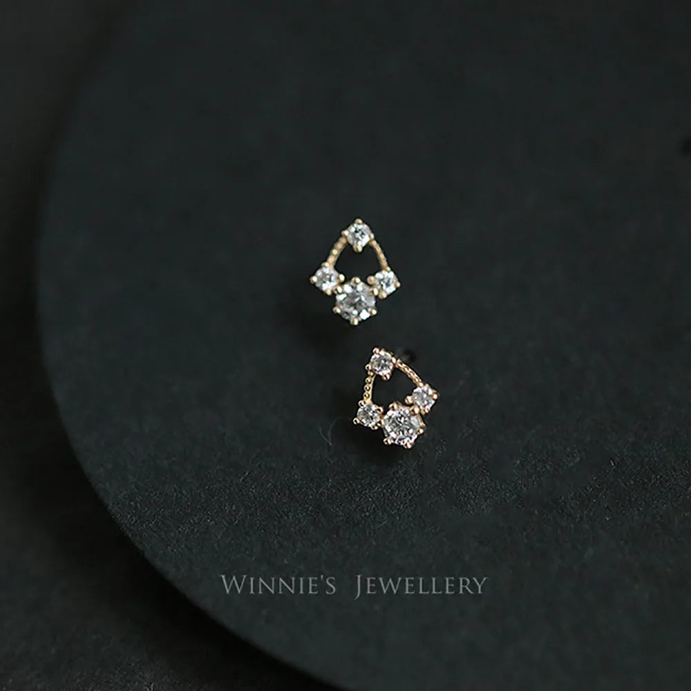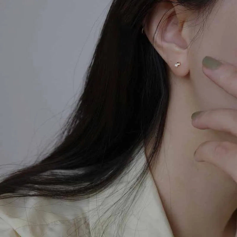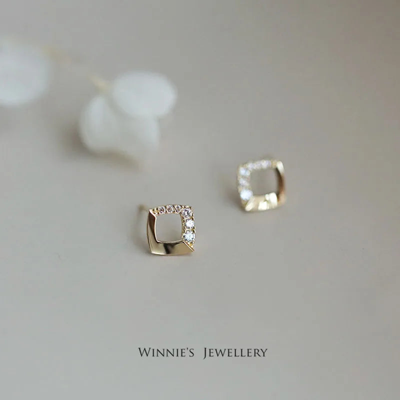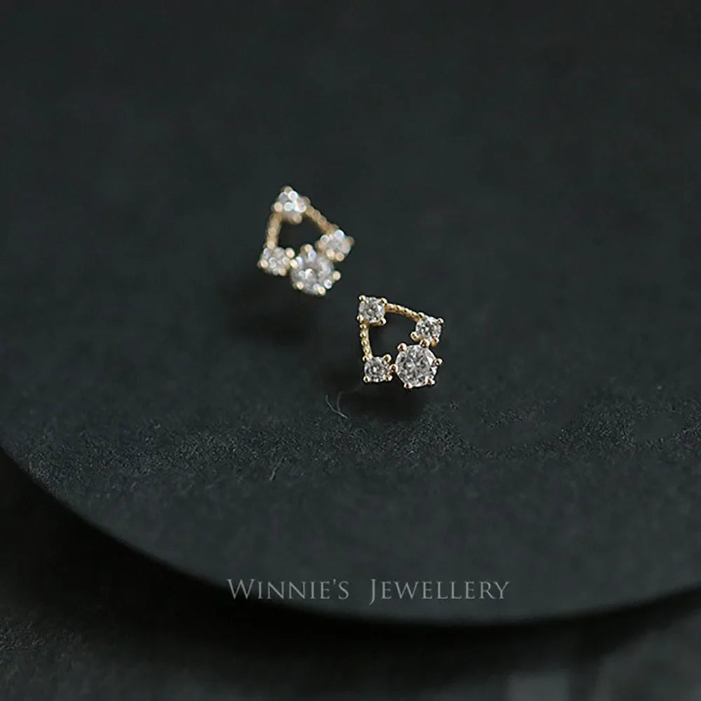 925 Sterling Silver 14k Gold Original Round Zircon Stud Earrings