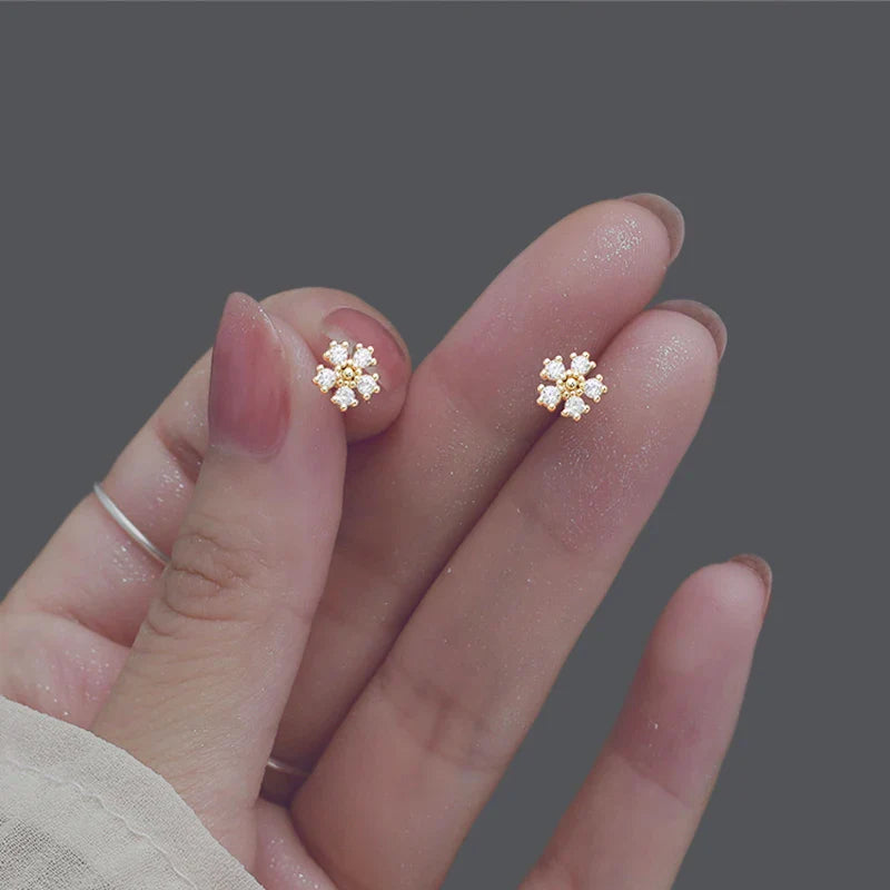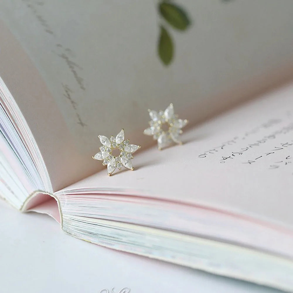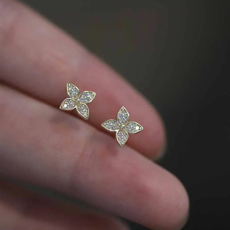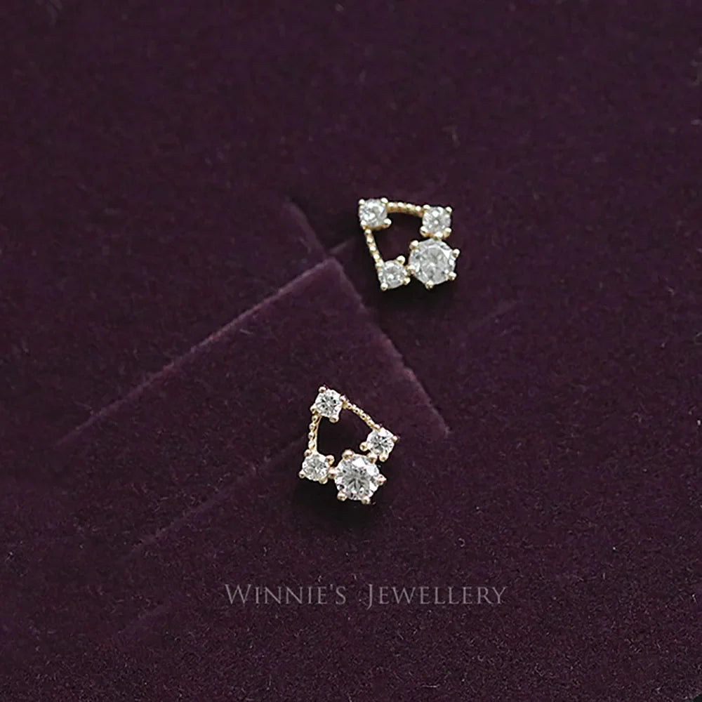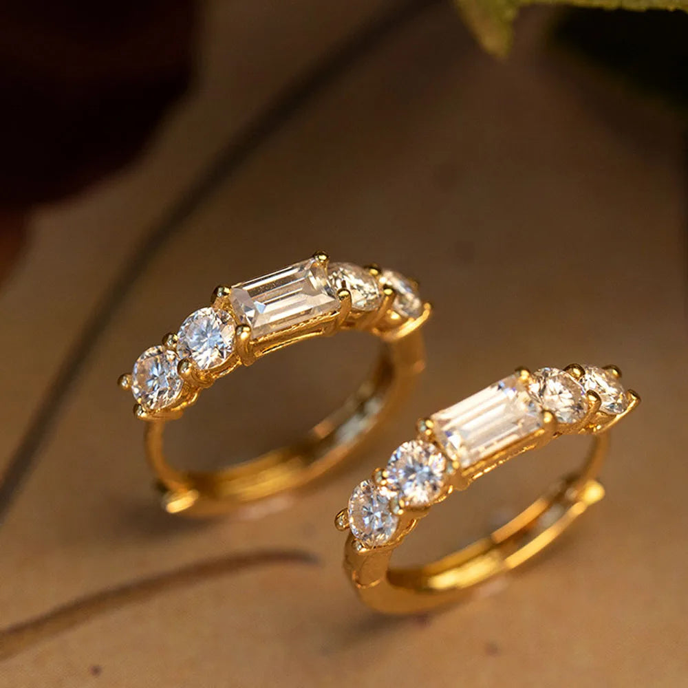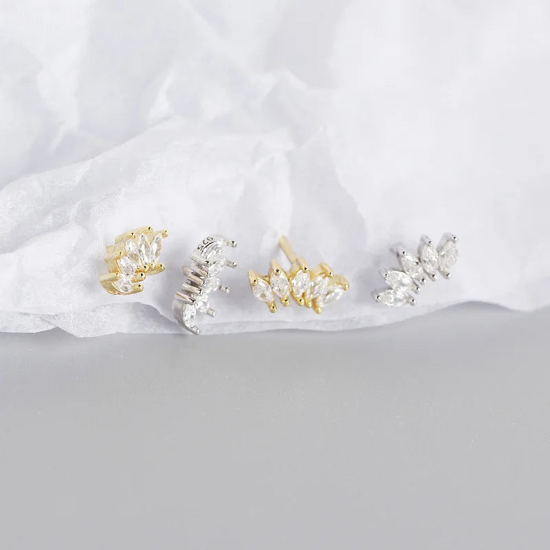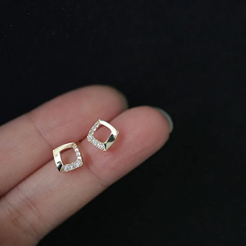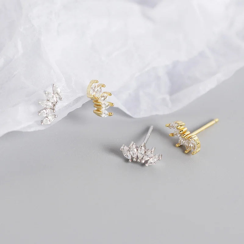 925 Sterling Silver 14k Gold Original Round Zircon Stud Earrings