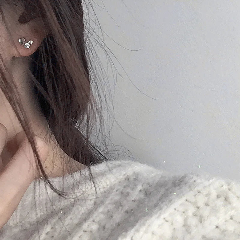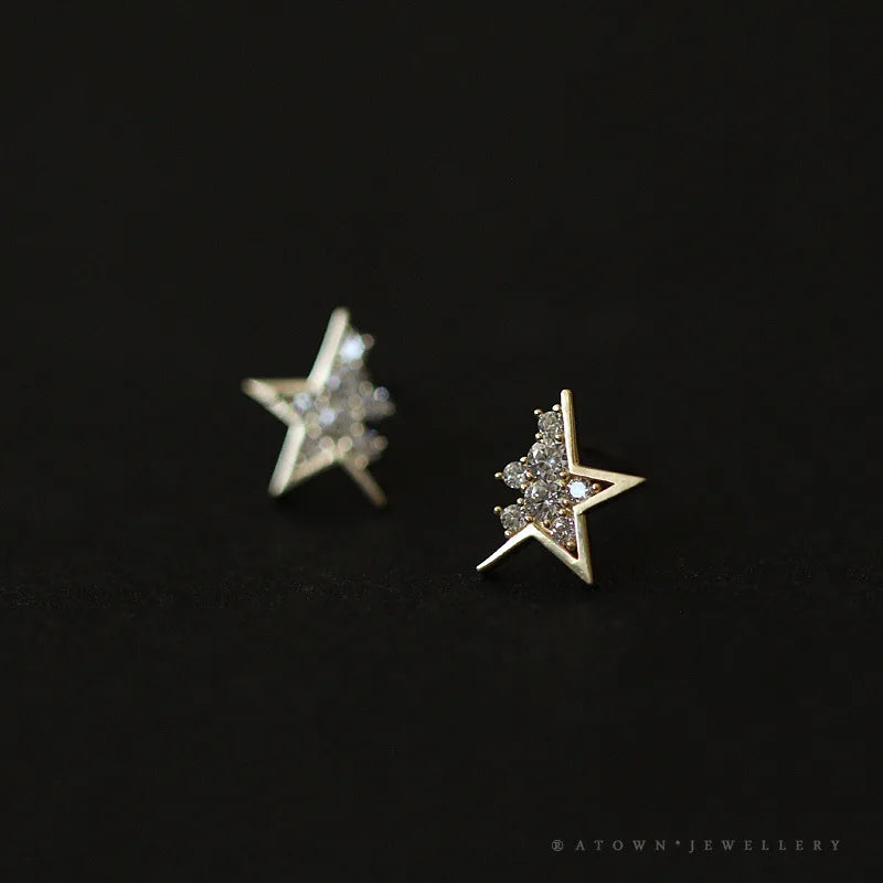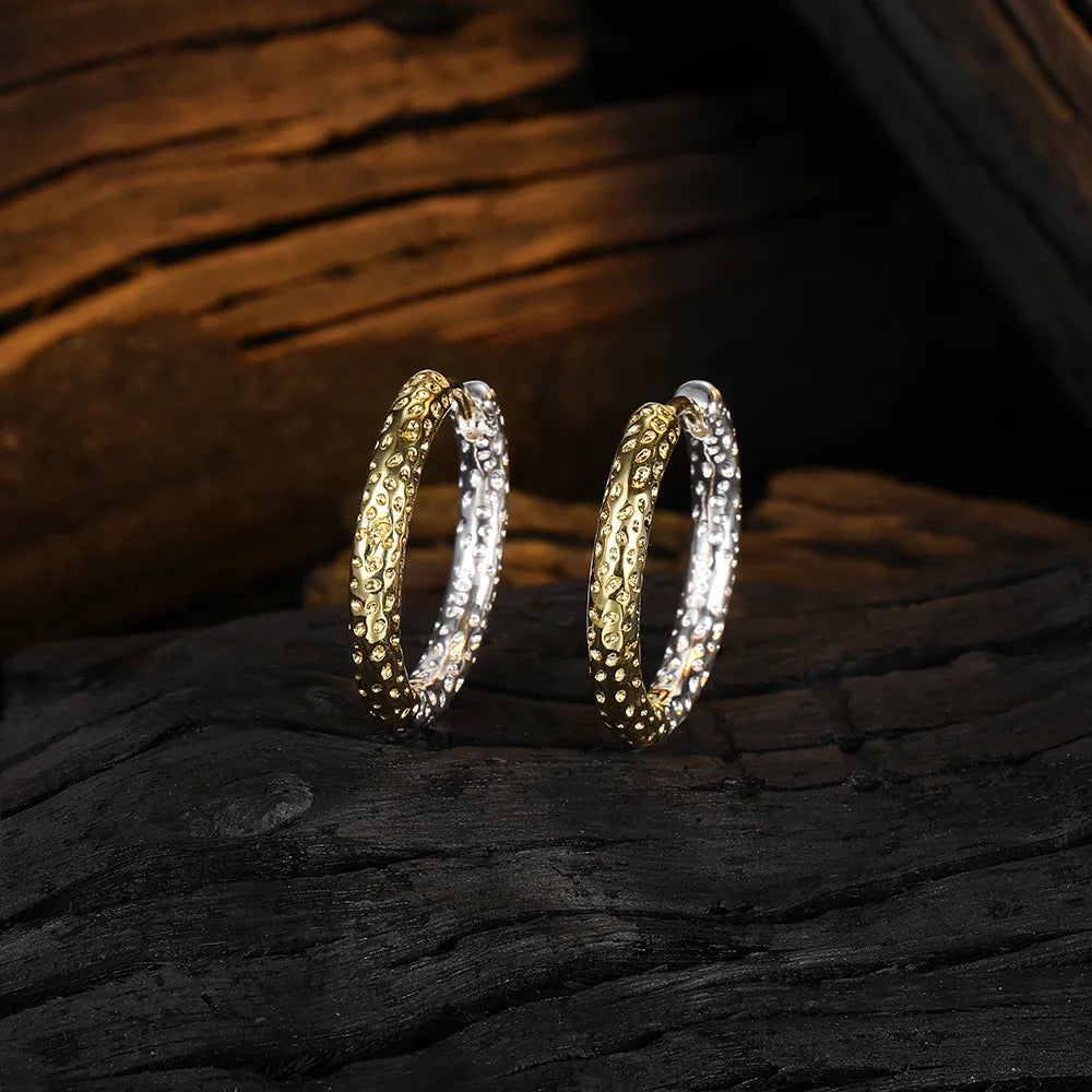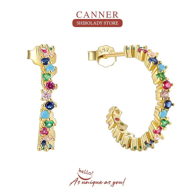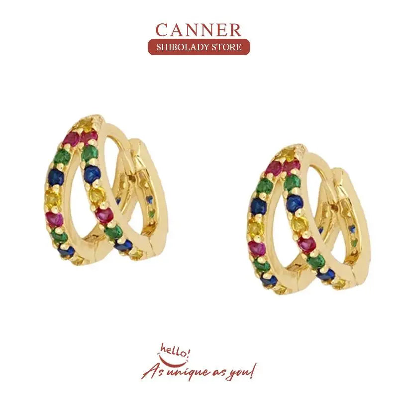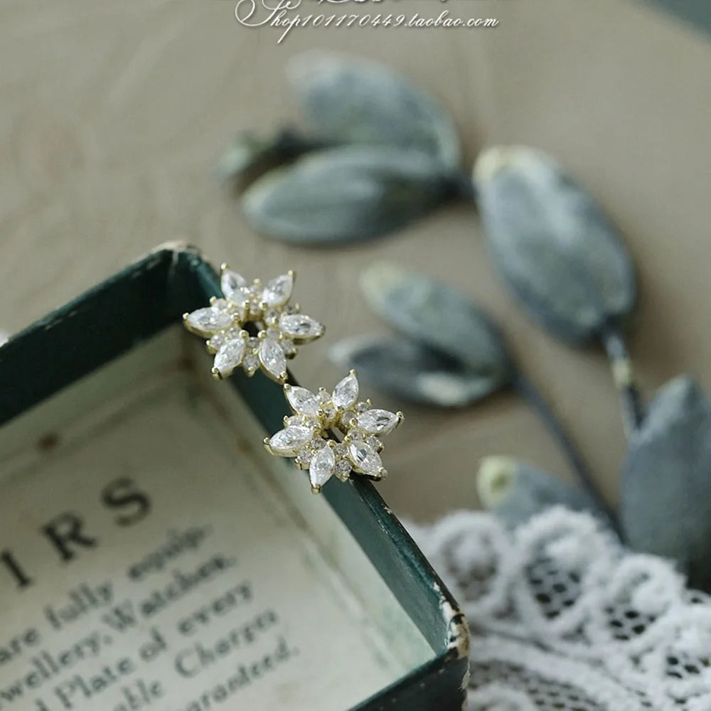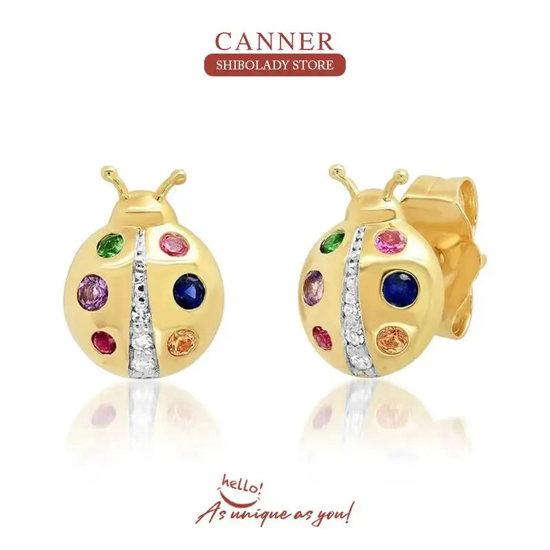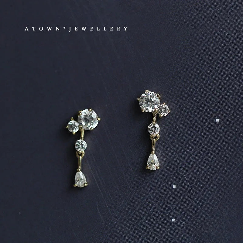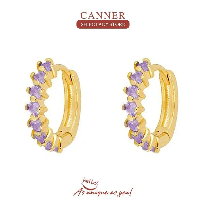 925 Sterling Silver 14k Gold Original Round Zircon Stud Earrings