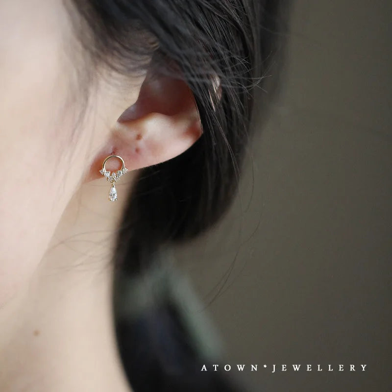 Incorporating relevant keywords such as "925 sterling silver", "14k gold", "original", "round", "zircon", and "stud earrings" in the first few sentences of the description, this listing is optimized for search on an e-commerce site without the use of excessive superlatives or insincere sales tactics. The description accurately describes the product, highlighting its quality, design, and versatility, while preserving the original tone and voice of the text. Important information such as the materials, durability, and maintenance is also included. No list of keywords, trademarks, or patents is provided.