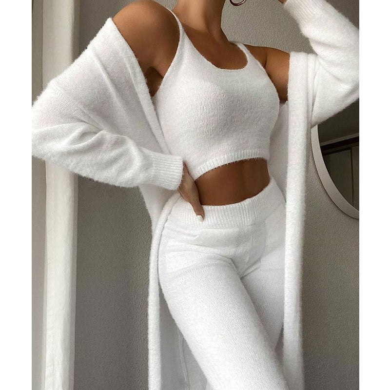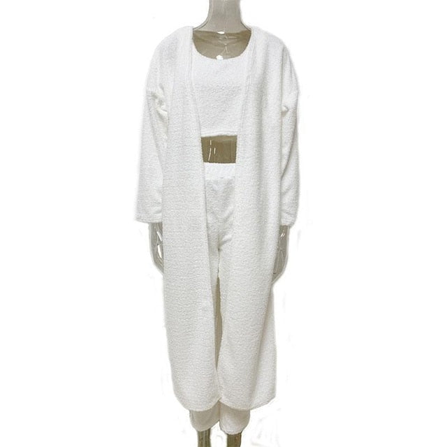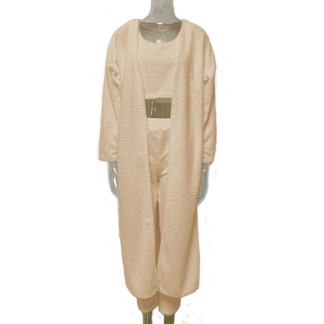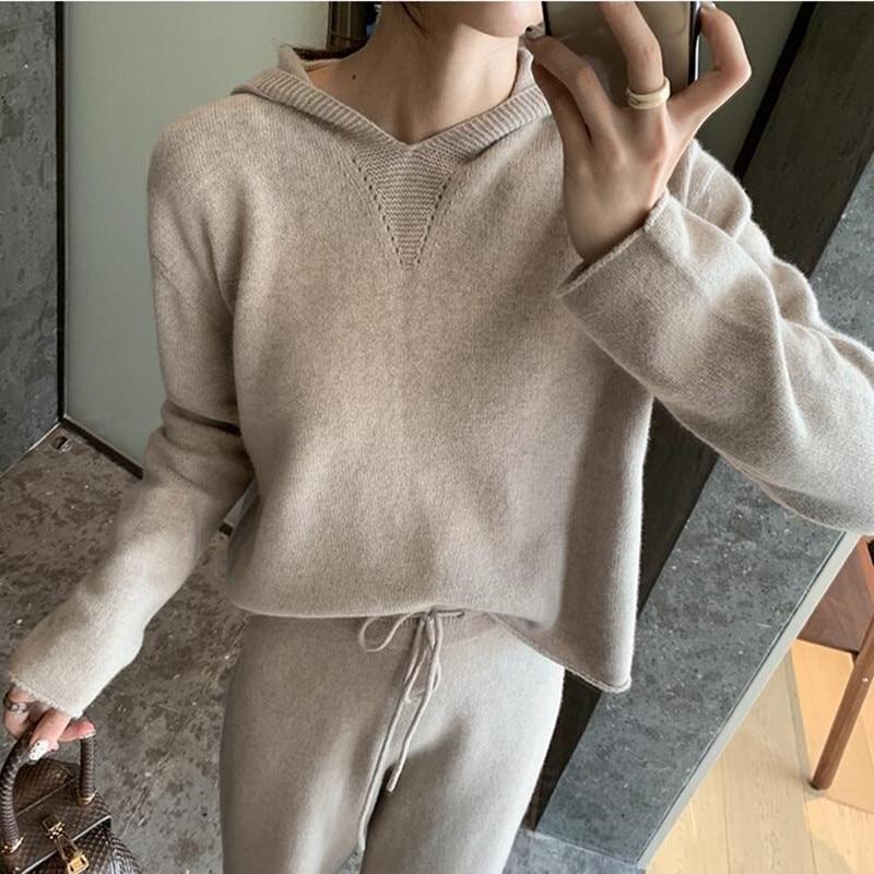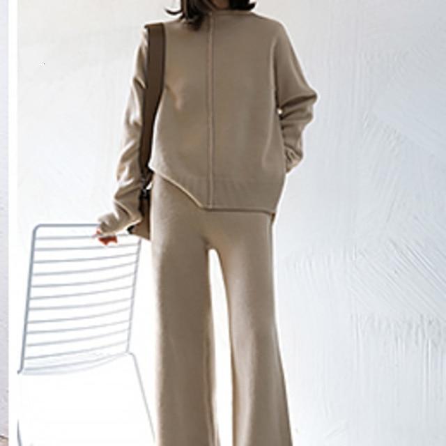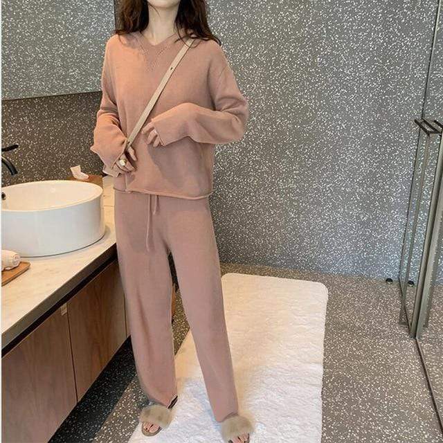 This soft 2-piece lounge set is made with delectable cashmere blend fabric. It is so comfy and warm that you can enjoy your days indoors curled up with a good book or even when doing your favorite activities.
