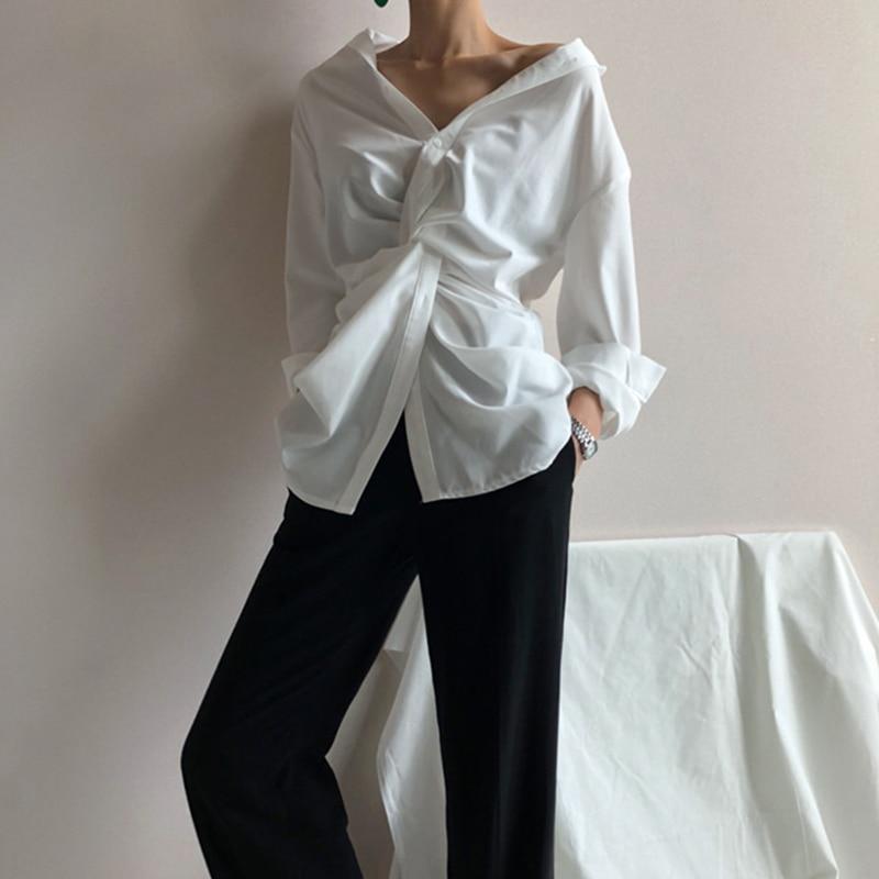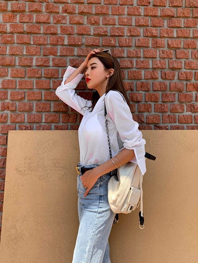 Gorgeous minimalist inspired shirt with V neck opening to show off those collar bones. Made from quality cotton fabric that is so comfortable to wear. Pair it up with statement earrings and flared trousers for that look straight from Vogue.