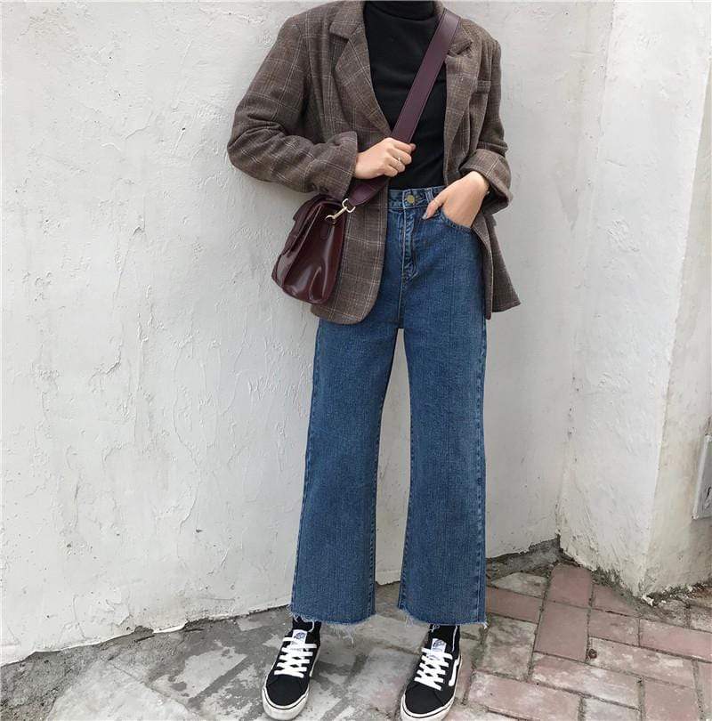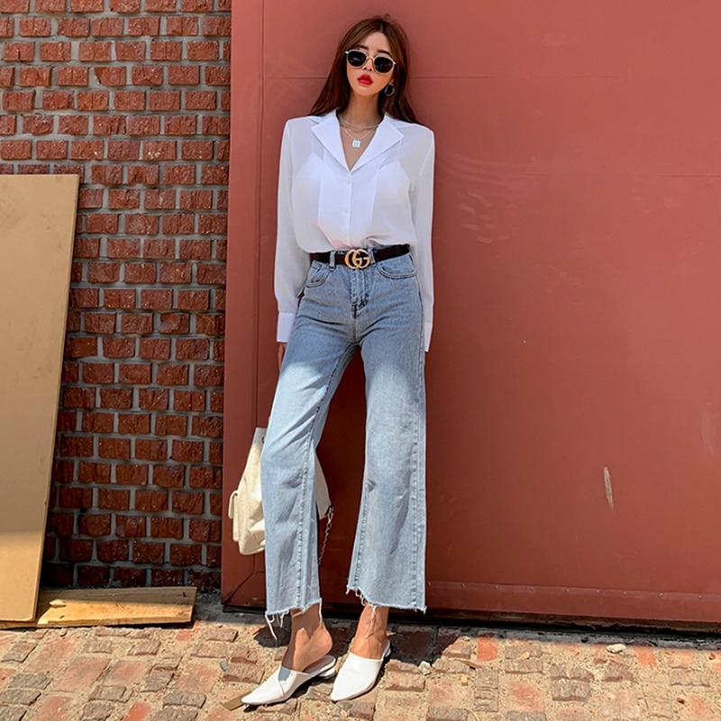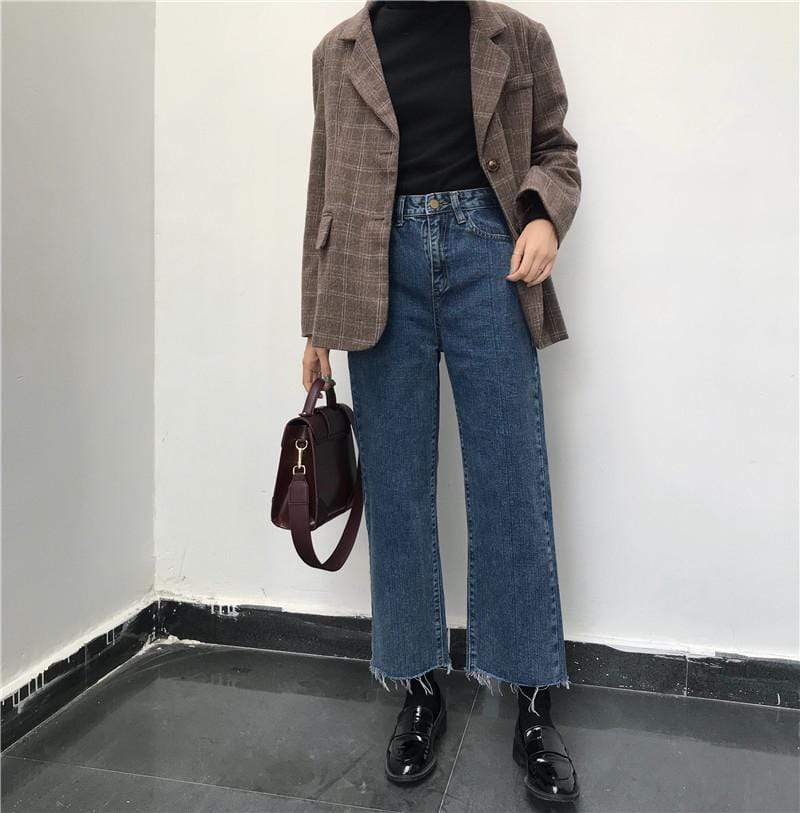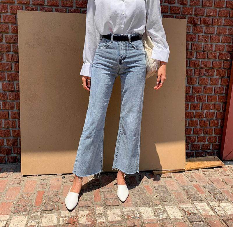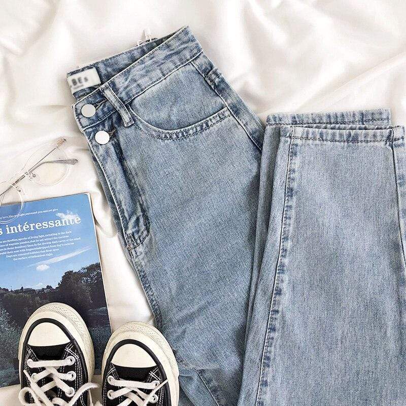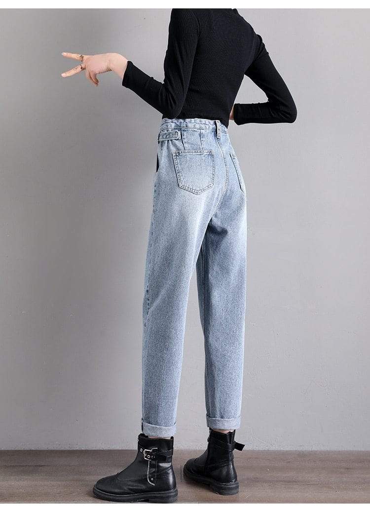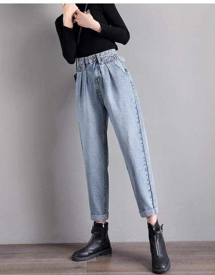 High waist jeans with pleats at waist and belt loops. Made in soft washed denim fabric in a straight cut style. Super comfy and all round good jeans to have as a staple in your wardrobe.