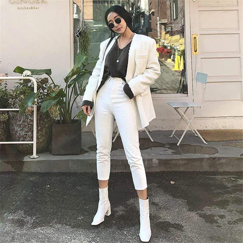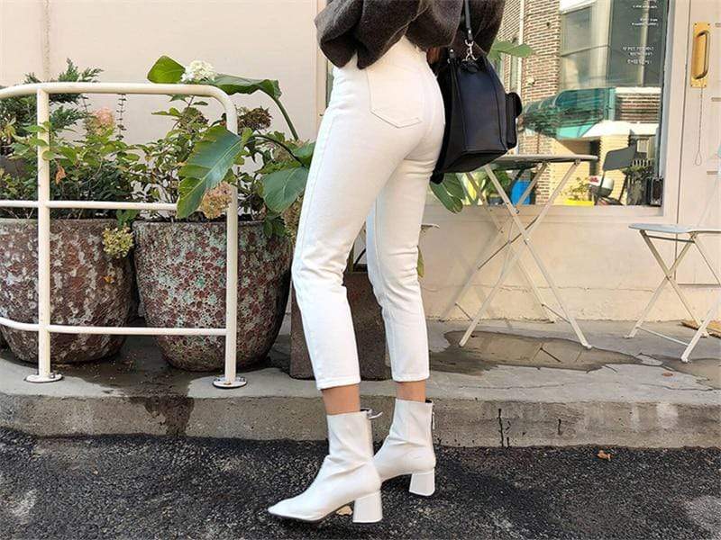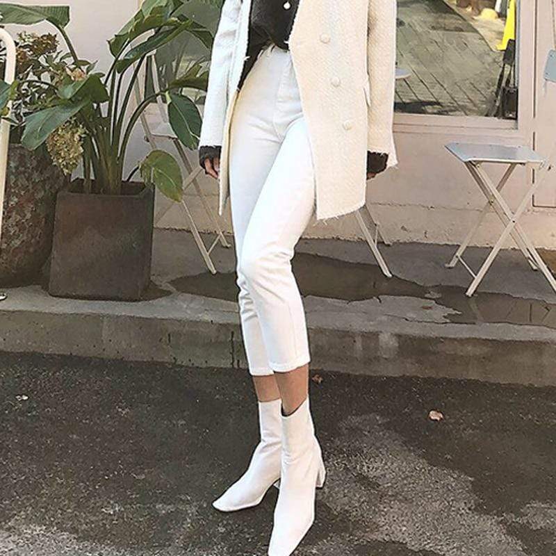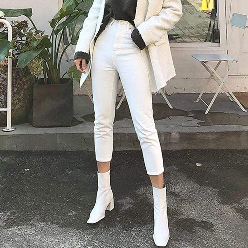 Ankle length capris denim pants. Designed in a slim fit and in quality cotton white denim fabric. Prepare to dazzle when paired with boots and dress up or down with blazer or jumper.