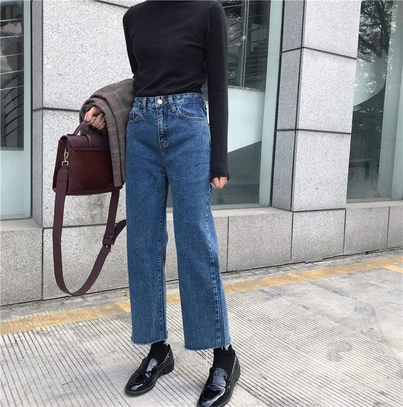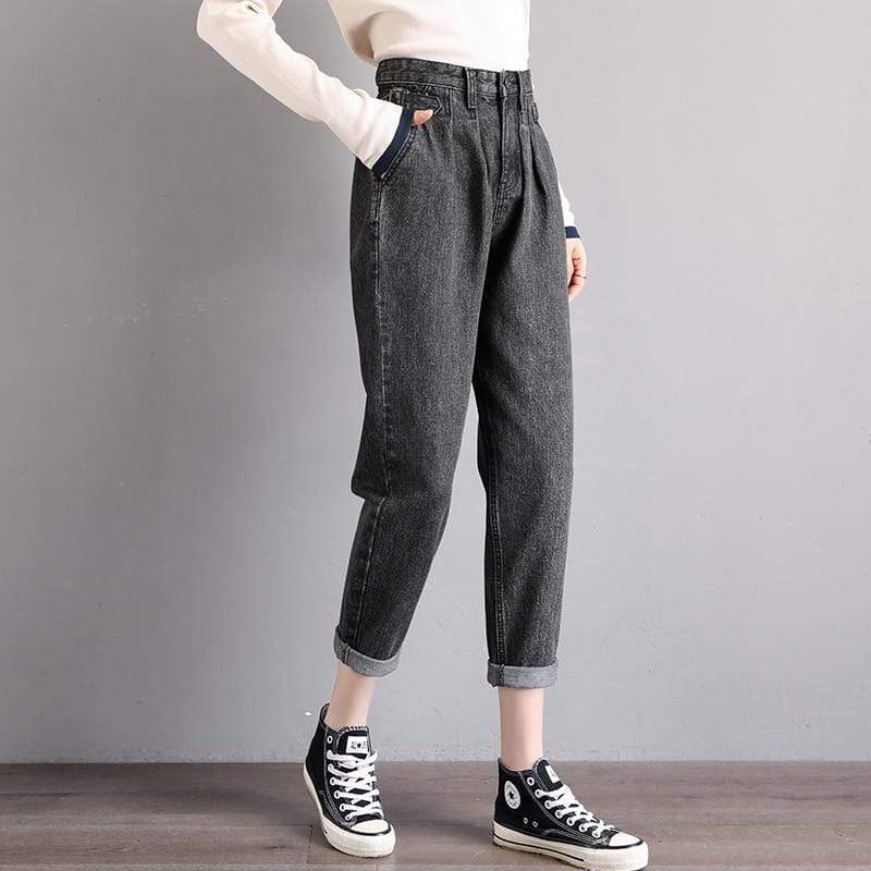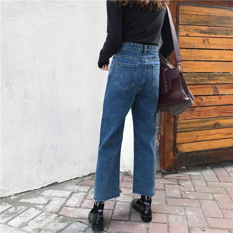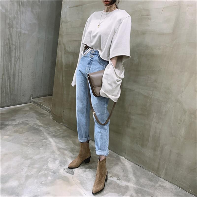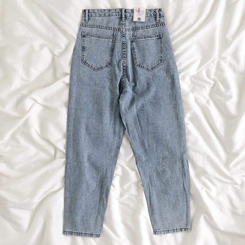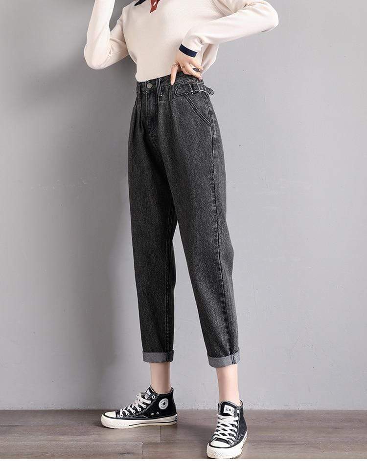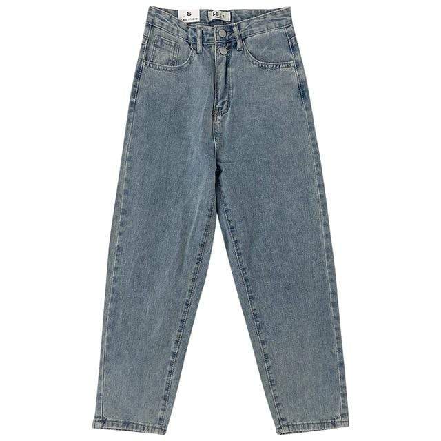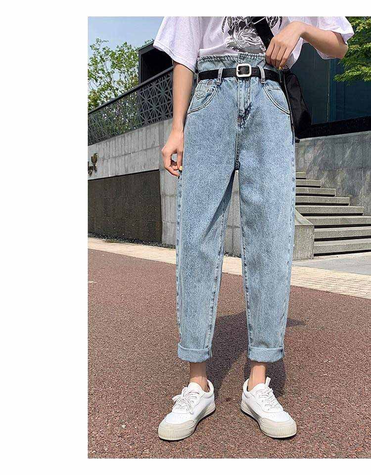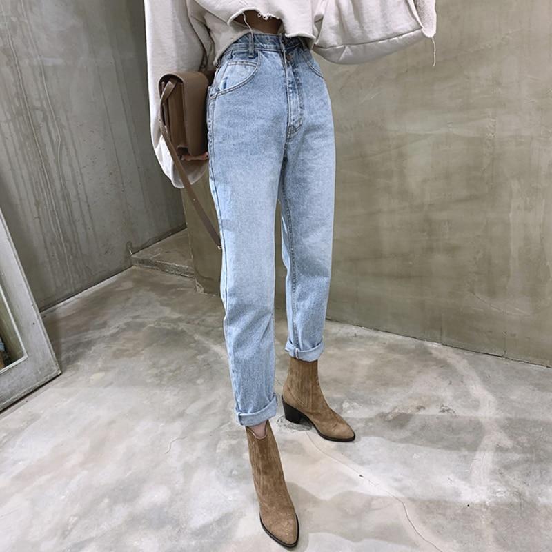 Edgey and slightly baggy denim jeans. Ankle length and high waisted. Made in quality stone washed denim fabric with great fit. Slightly tapered trouser legs and looks great with a shirt or sweater.