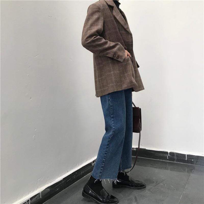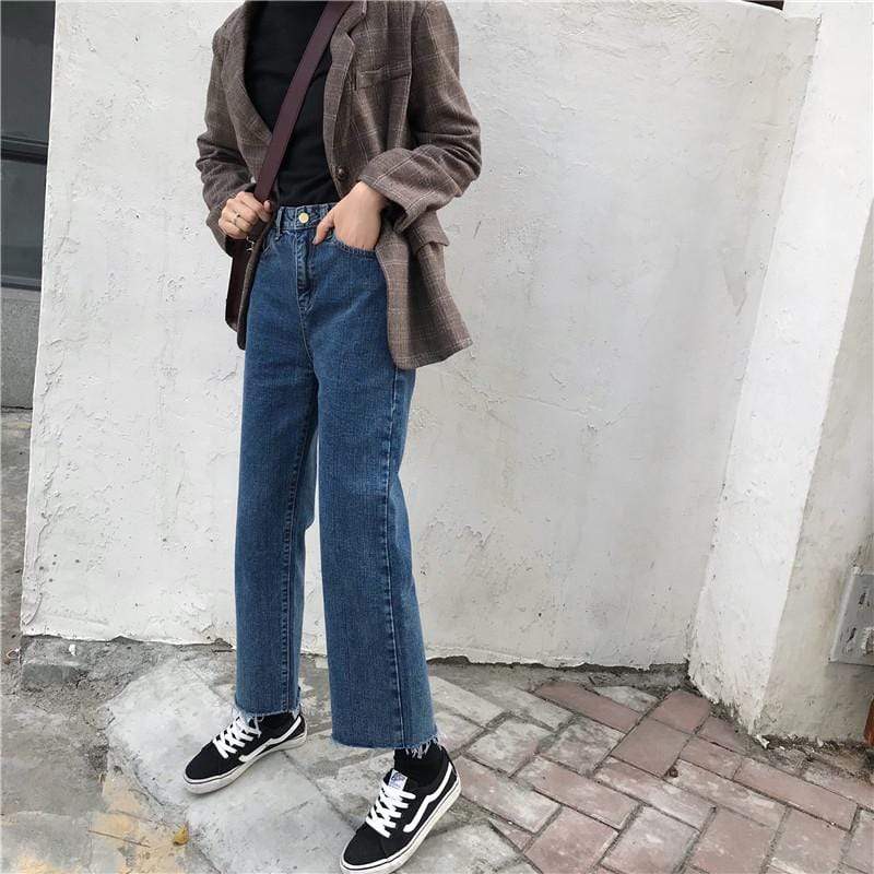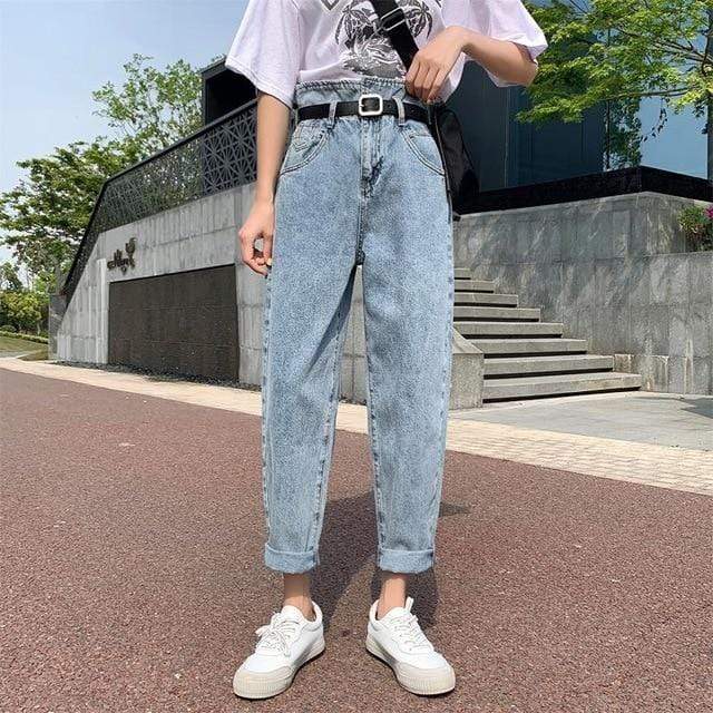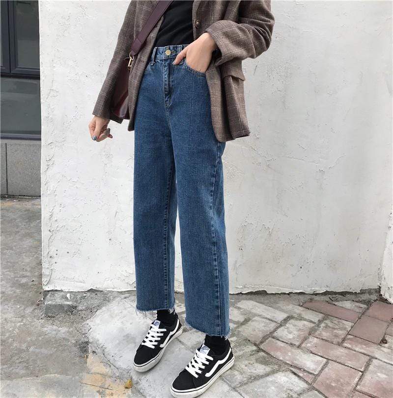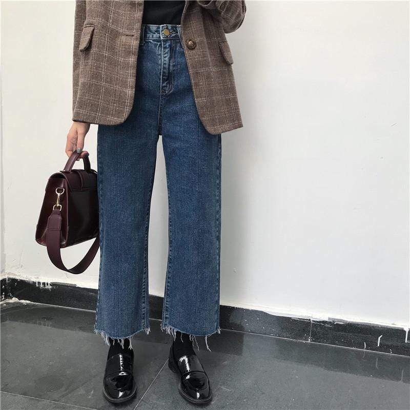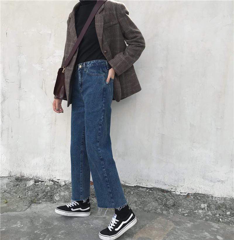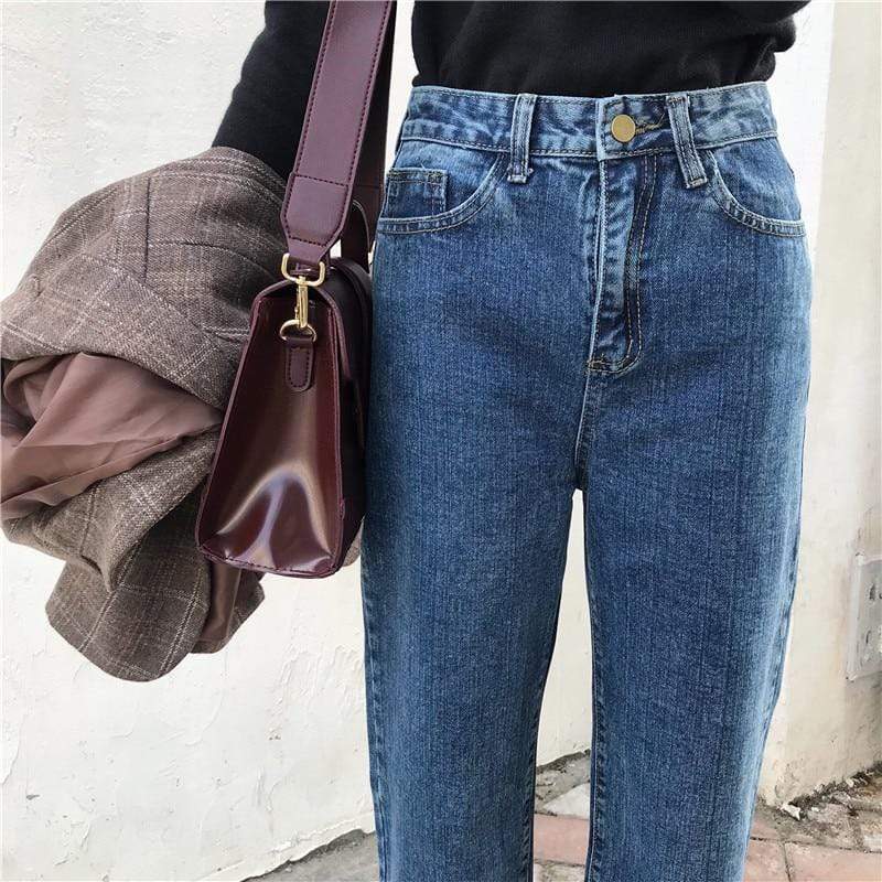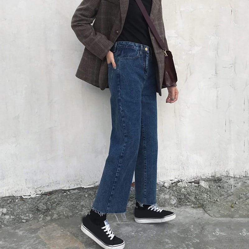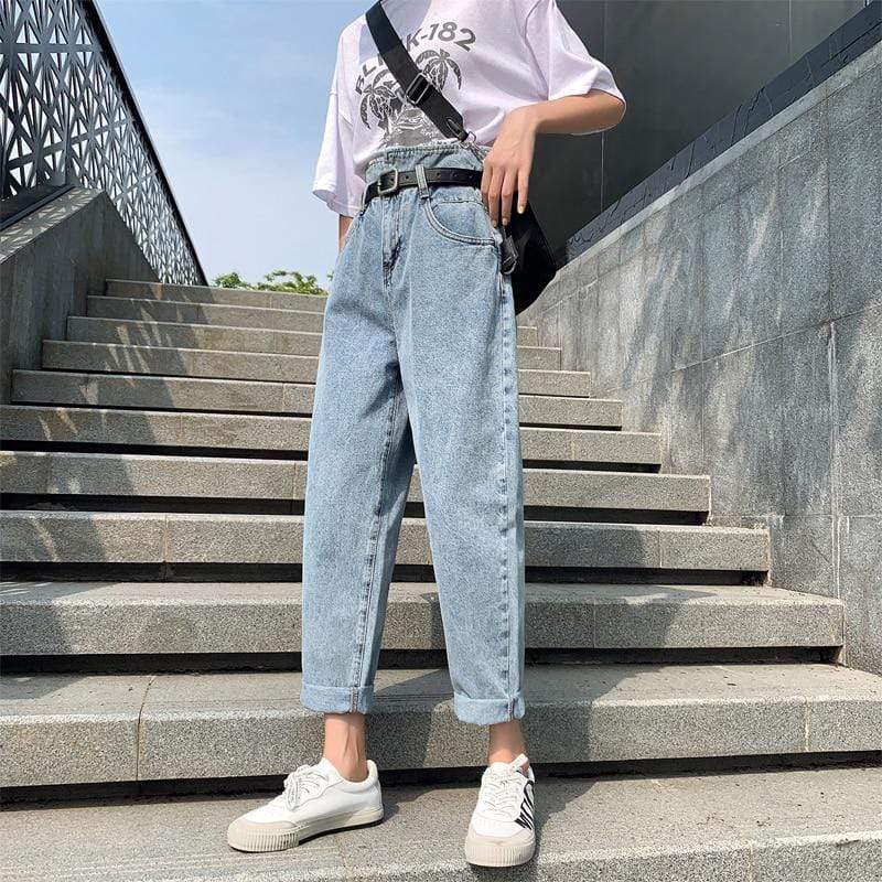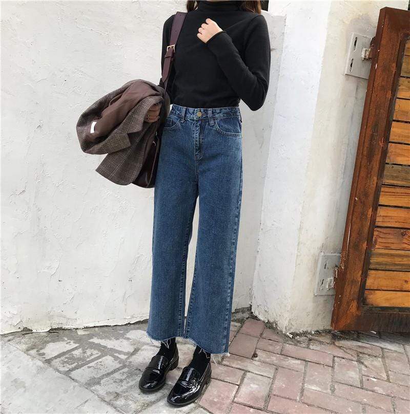 Edgey and slightly baggy denim jeans. Ankle length and high waisted. Made in quality stone washed denim fabric with great fit. Slightly tapered trouser legs and looks great with a shirt or sweater.