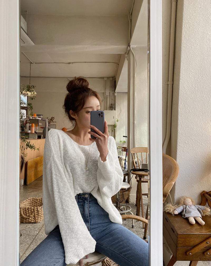 Our simple cotton fabric has a touch of cashmere with a bit of acrylic, cashmere. It’s easy to layer, easy to transition. This sweater will provide you with year-round warmth by being versatile and making you feel your best. Let this be your new go-to.