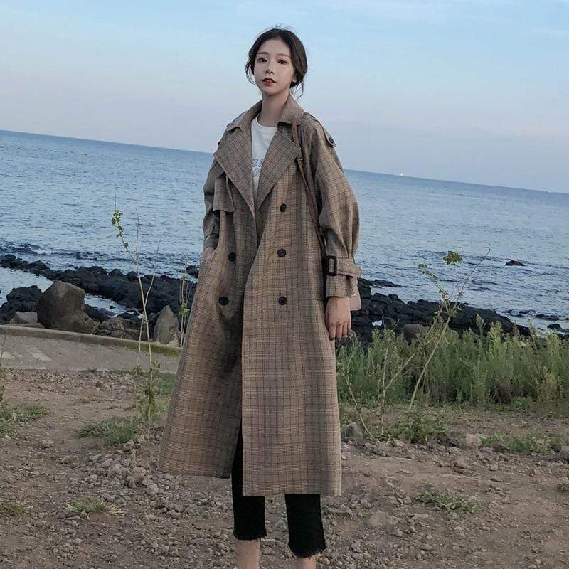 Double breasted trench coat, have an adventure or make your outfit more casual but chic and warm. Made from a lightweight outerwear fabric with a plaid pattern. Features a tie on waist and cuffs. Durable and comfortable to wear.