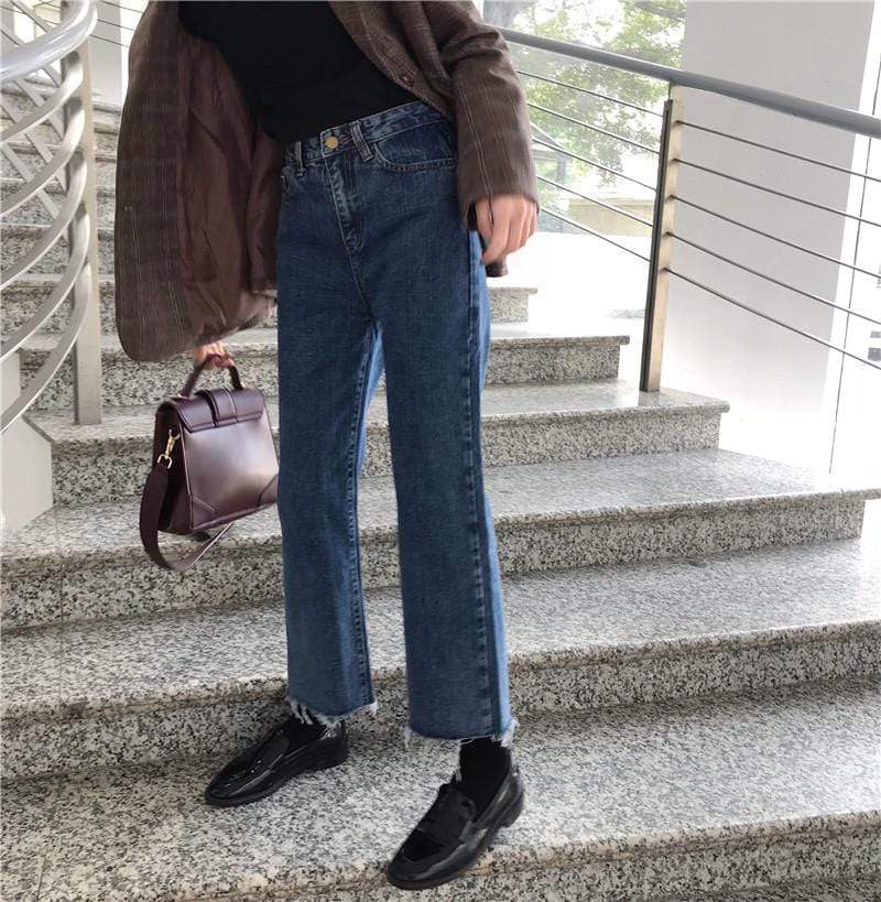 Denim Jeans with a perfect slightly flared cut. Pairs well with a blazer. Loose fitting, ankle length and in a highly comfortable and durable fabric. Get ready to wear these out constantly.
