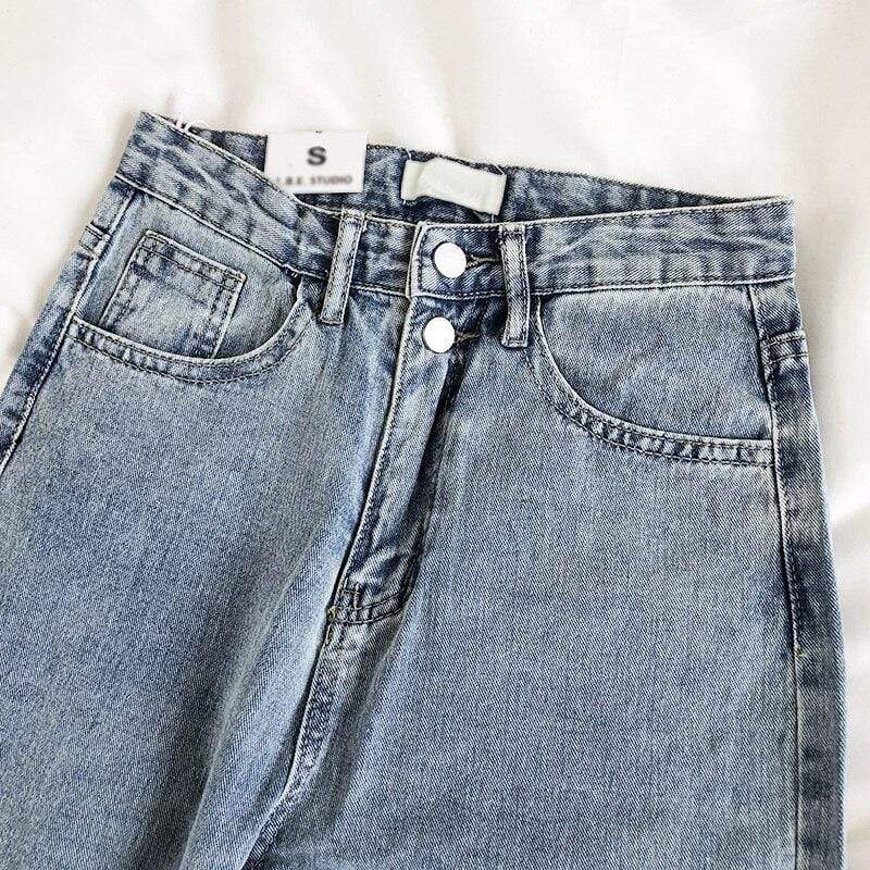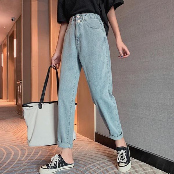 High waist jeans with double button waistband detail. Made from softened denim for that superior comfort and fit. Designed with a slightly tapered leg and pockets. Wear these with rolled hem and a baggy t-shirt and you're good to go for casual comfortable weekend attire.