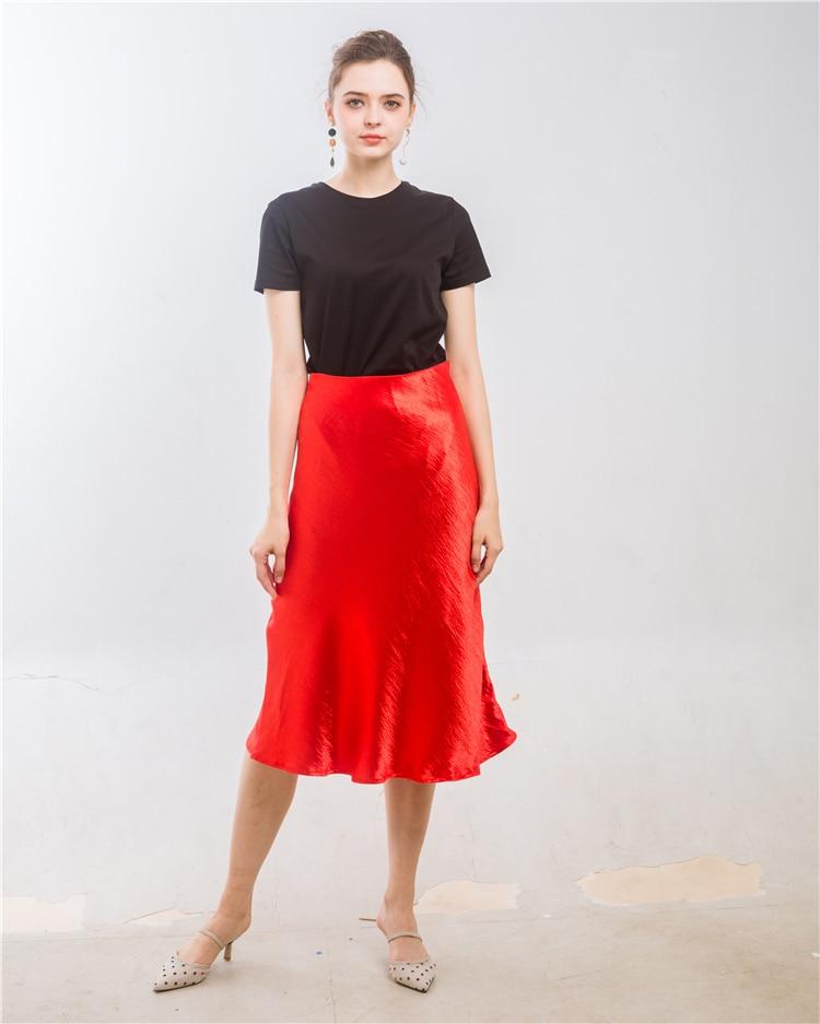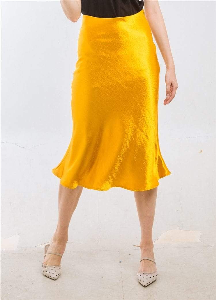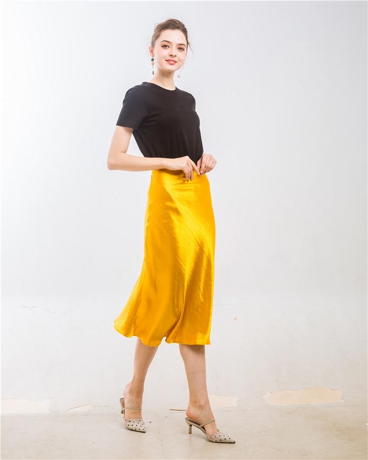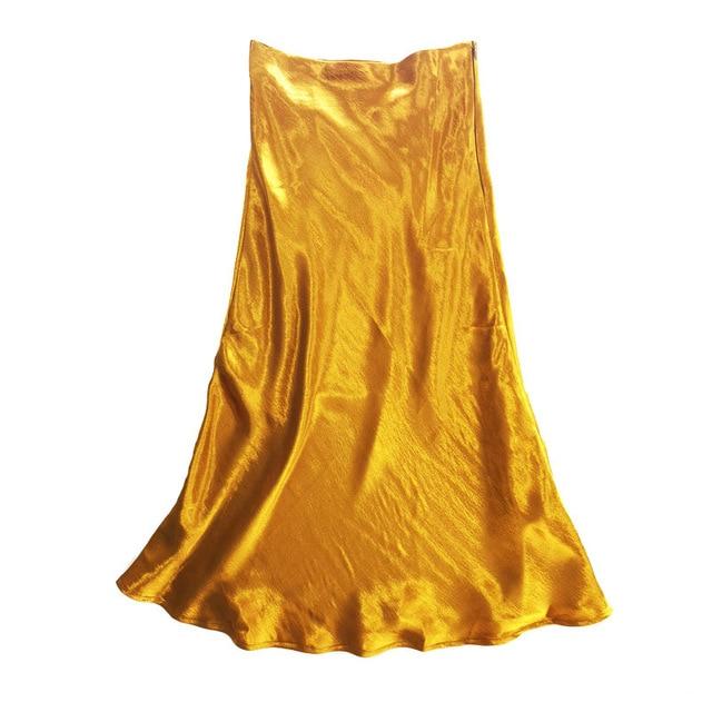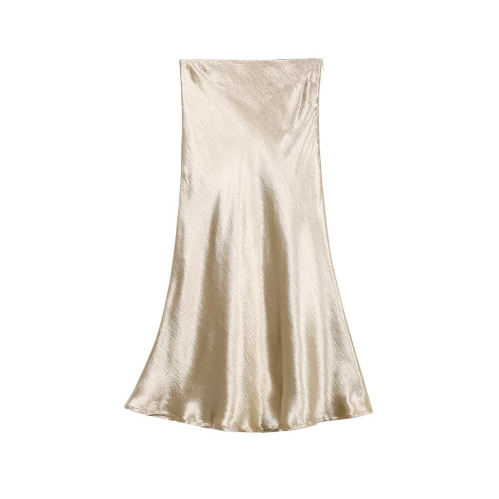 Beautiful skirt in a silky matt fabric with a bit of shine. Pair with a denim jacket to dress it down or of course you can dress it up with a halter top for something more fancy.