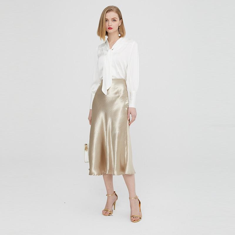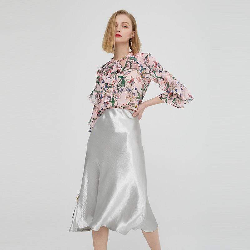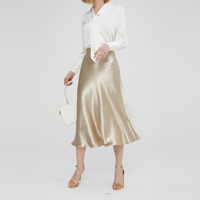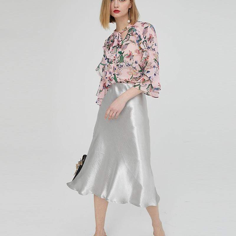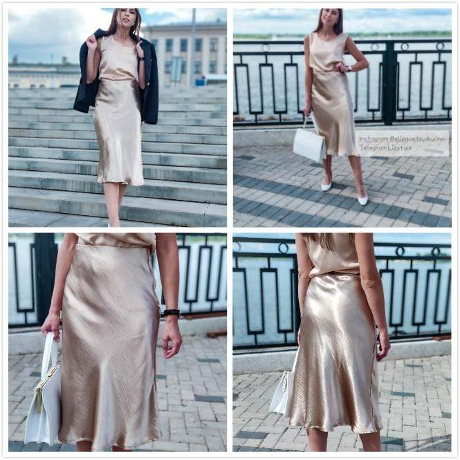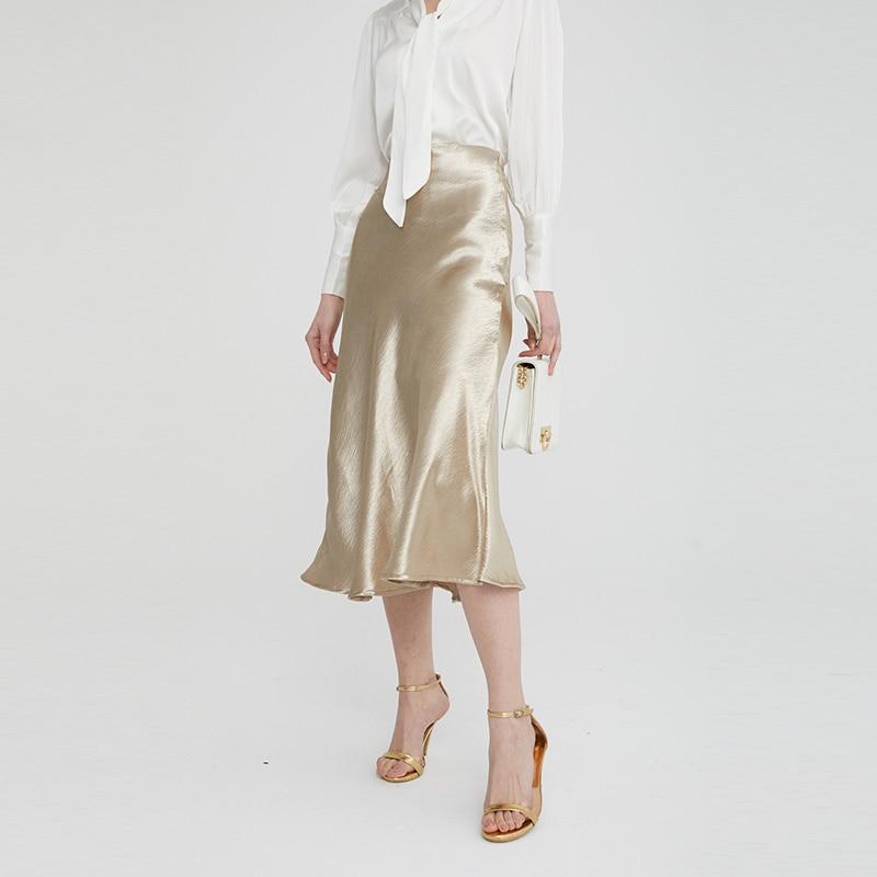Beautiful skirt in a silky matt fabric with a bit of shine. Pair with a denim jacket to dress it down or of course you can dress it up with a halter top for something more fancy.