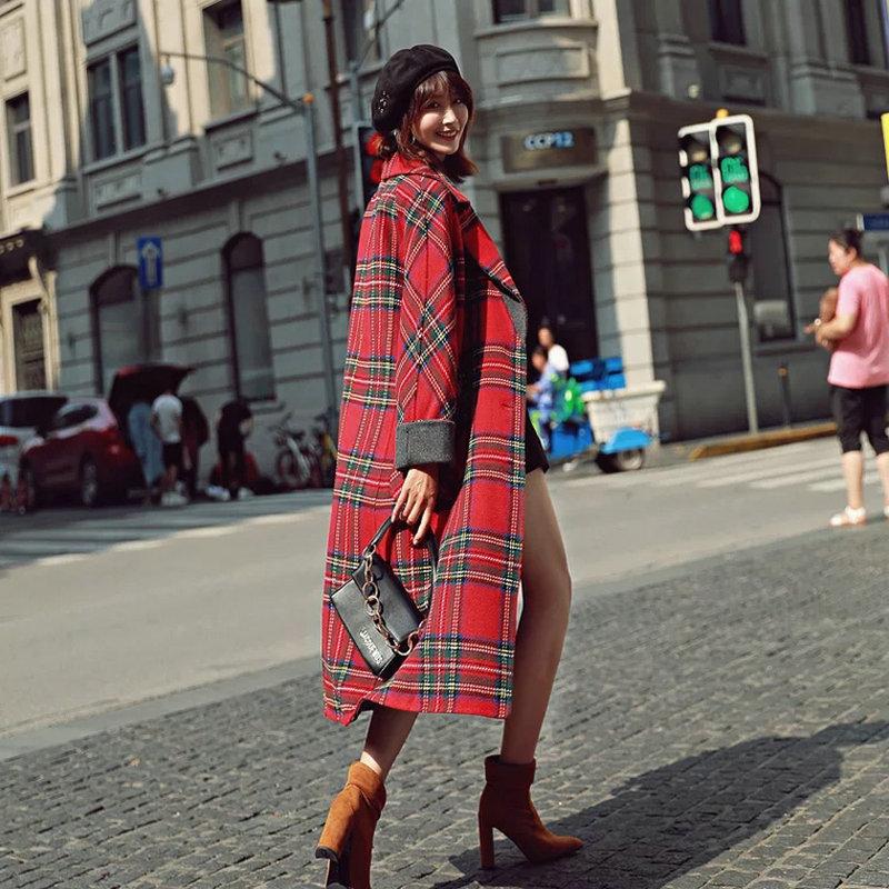 Plaid coat in a gorgeous red colour, to bring interest to your outfit.