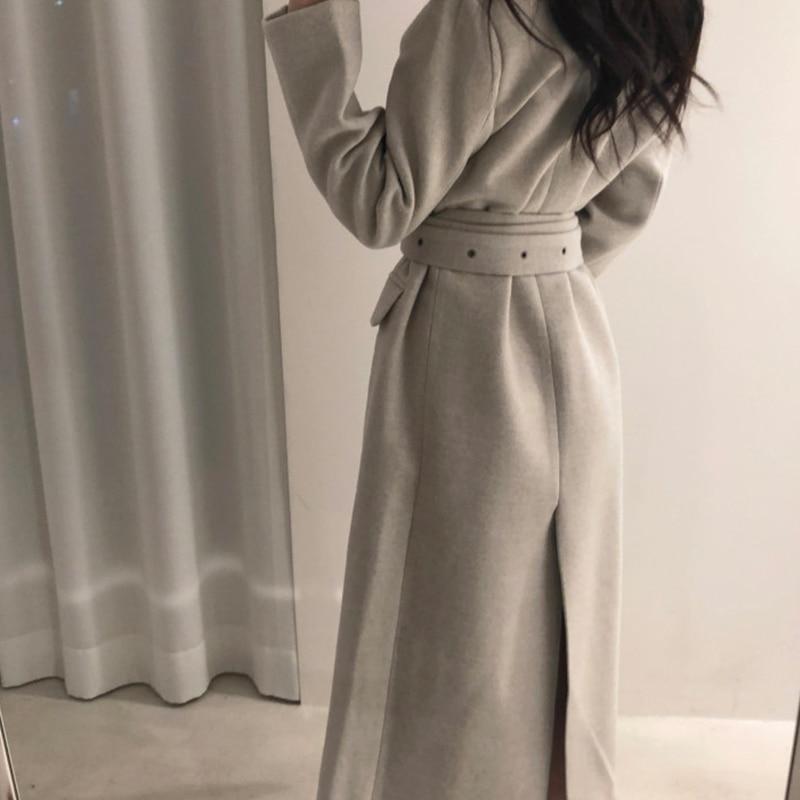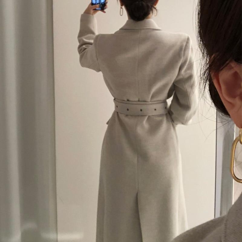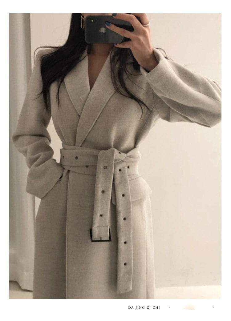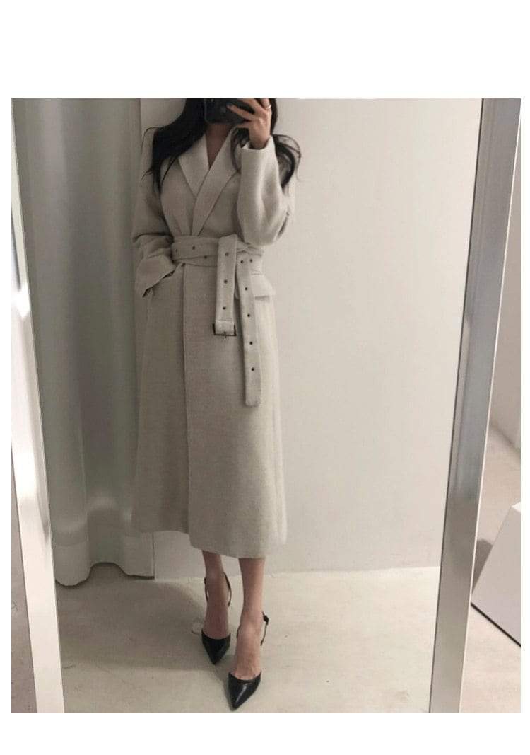 Sophisticated wool-blend coat. Size runs large. Featured a tie belt and a minimalist design and slightly flared sleeves. Vent at the back for ease of movement. Incredibly warm and high quality fabric. All in an elegant white colour.